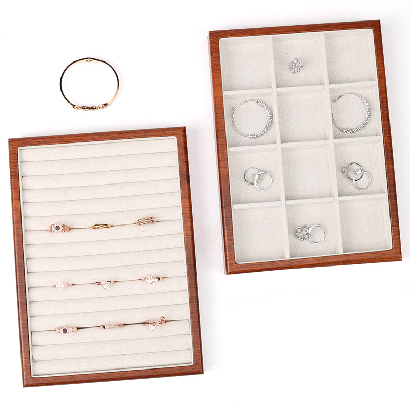 | nameOriginal | Linen jewelry tray wood grain ring bracelet jewelry display plate storage jewelry shooting props jewelry display stand |