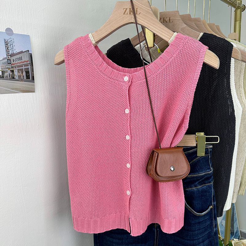 | nameOriginal | Linen Thirteen Rows Women's Fashion Korean Knitted Vest Summer Single-breasted Solid Color Niche Sleeveless Top |