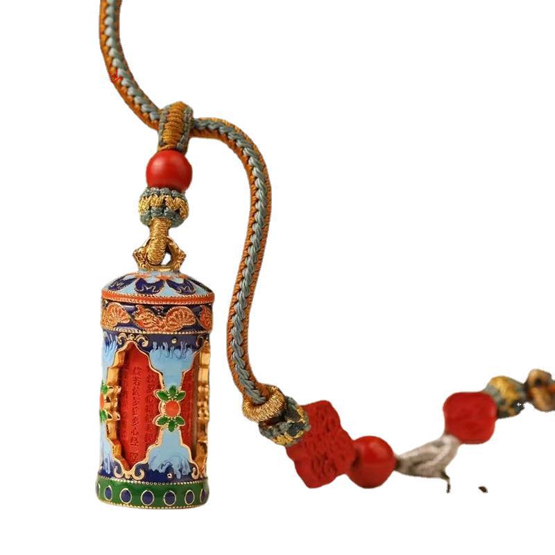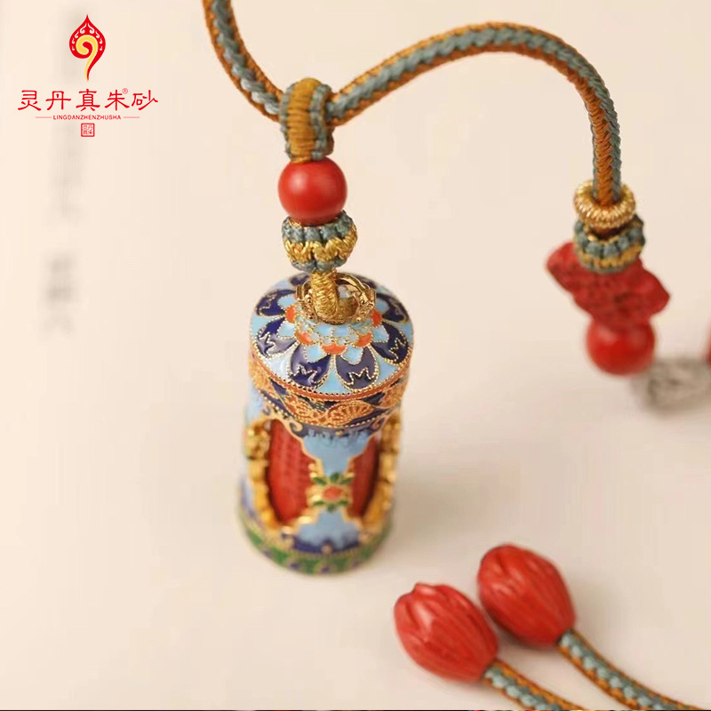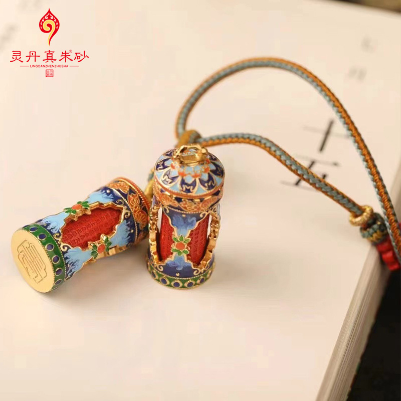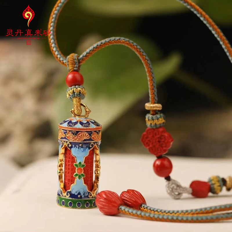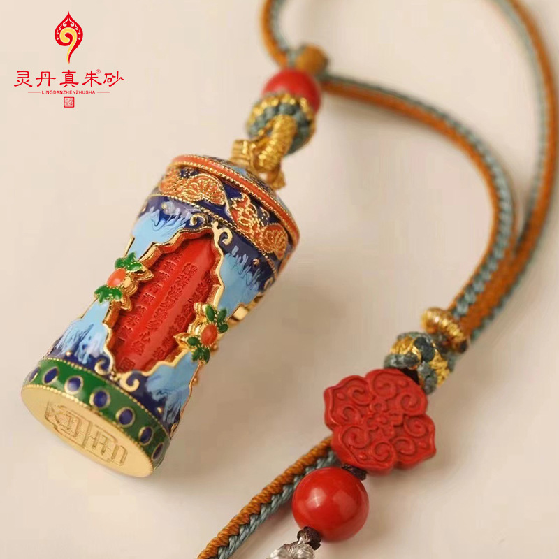 Lingdan Raw Mine Real Cinnabar Colorful Heart Scripture Pendant Enamel Tibetan Scripture Tube Necklace Silver Inlaid Peace and Prosperity