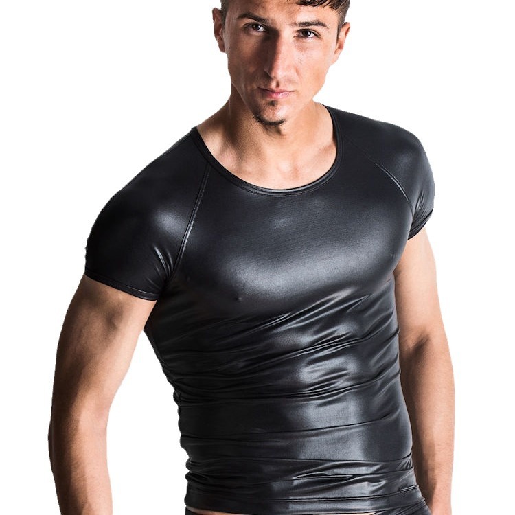 Lingerie nightclub stage ds costume matte leather T-shirt tights crotch leather shorts N805/N806