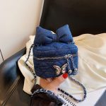 Lingge Chain Bag Women’s 2023 New Niche Design Denim Shoulder Crossbody Bag Internet Popular Bucket Bag