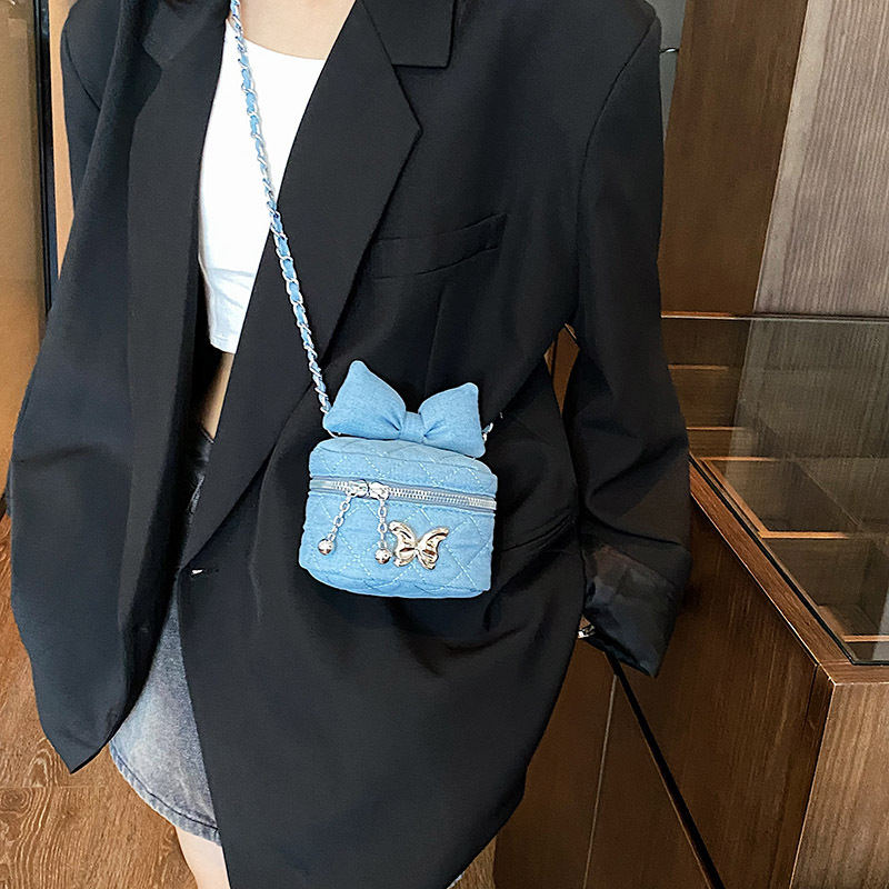 Lingge Chain Bag Women's 2023 New Niche Design Denim Shoulder Crossbody Bag Internet Popular Bucket Bag