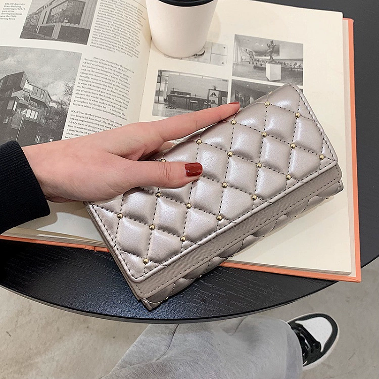 Lingge European and American long -handed retro wallet