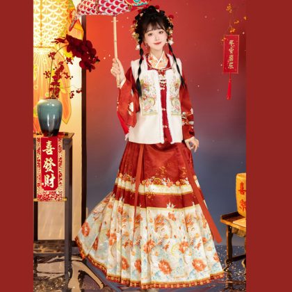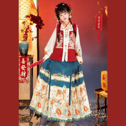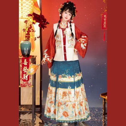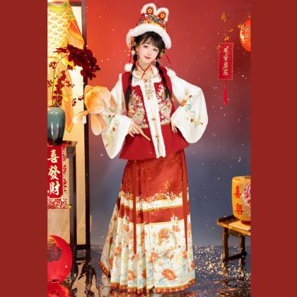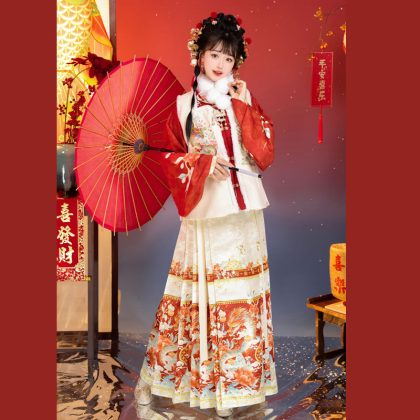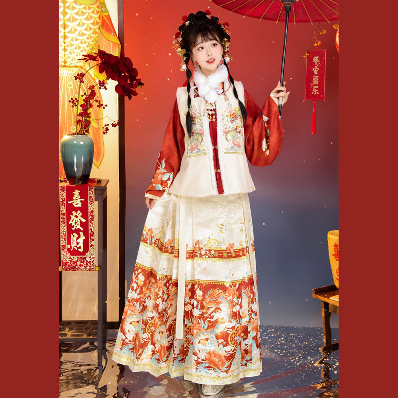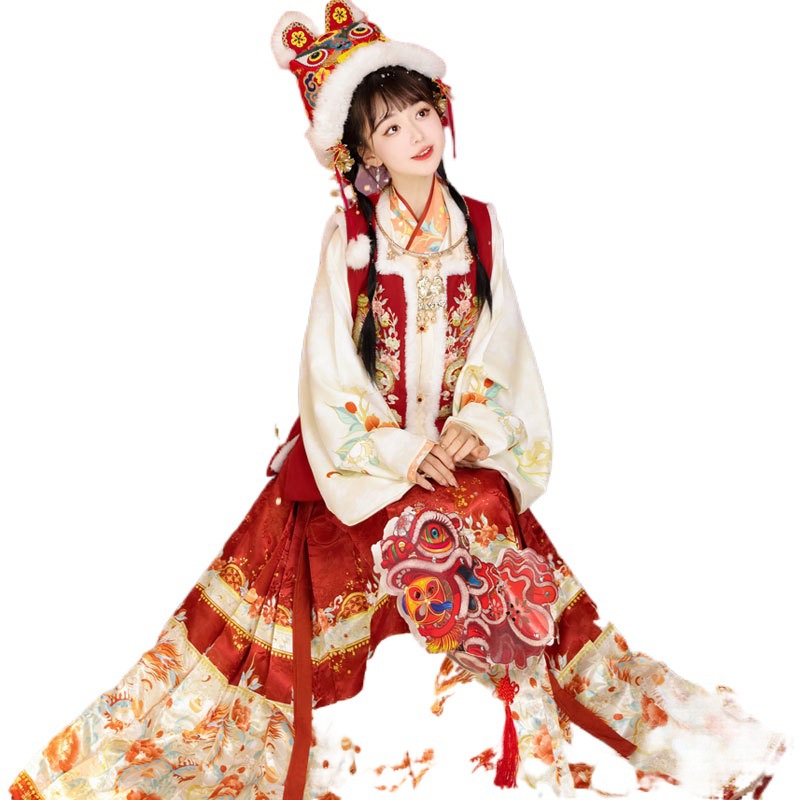 nameOriginal | Lingxiluo original Yulong Yunfei Hanfu women's Ming-made square collar embroidered Bijia vest dress New Year greeting dress winter fleece-lined |