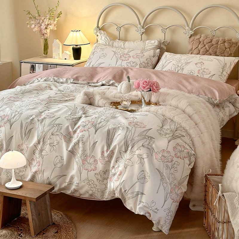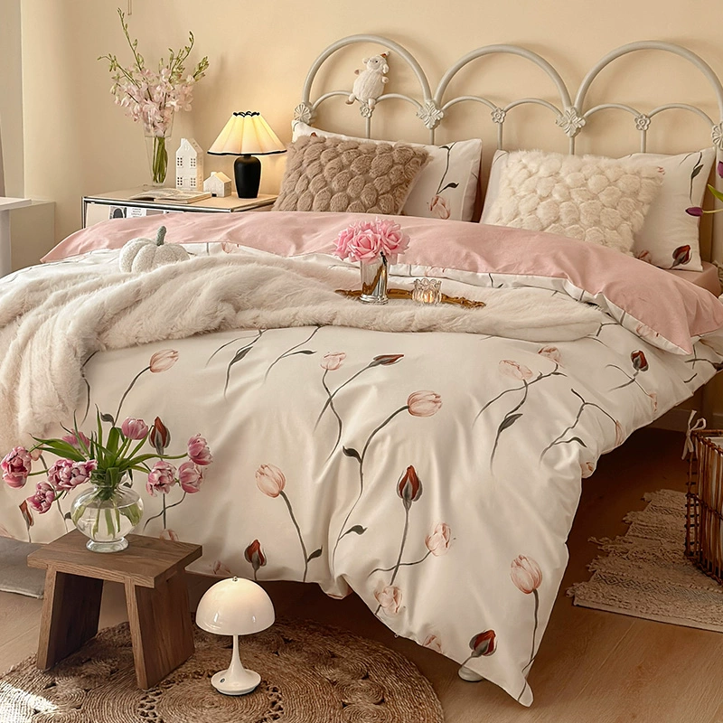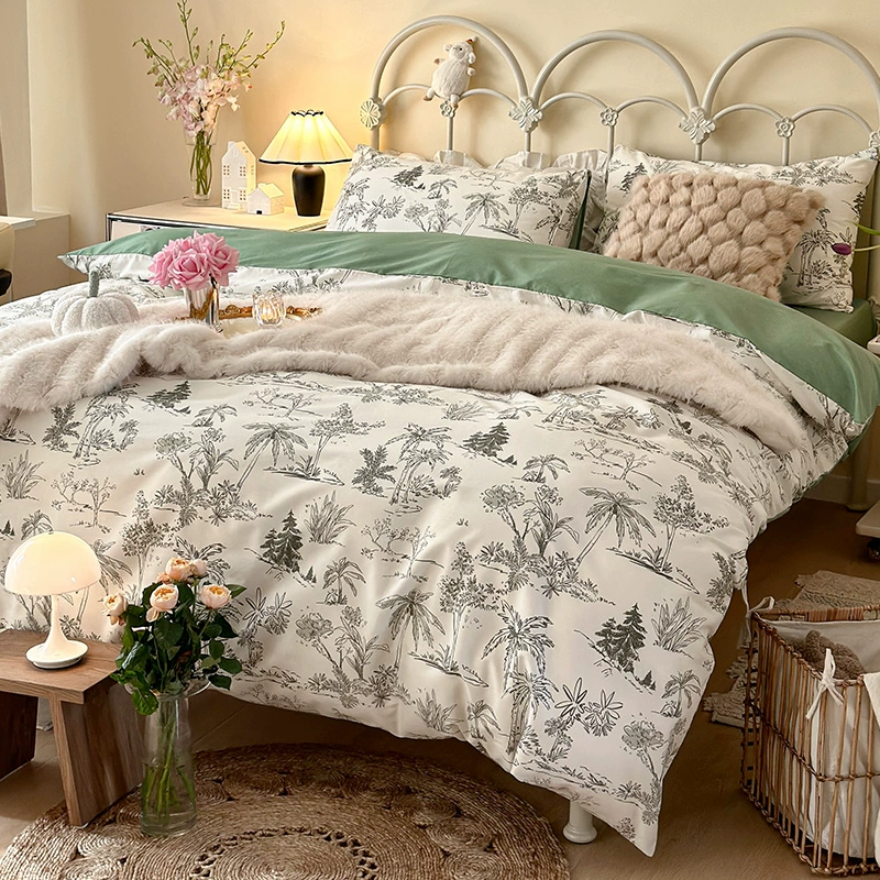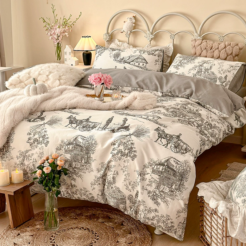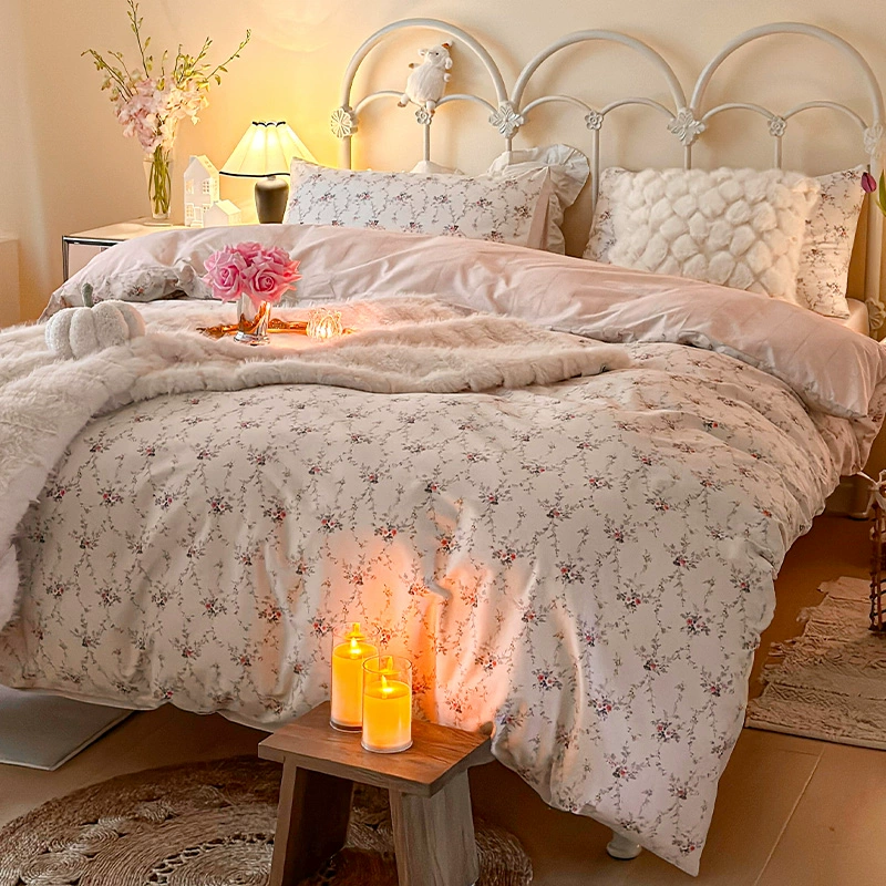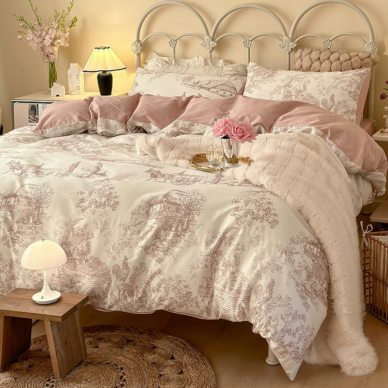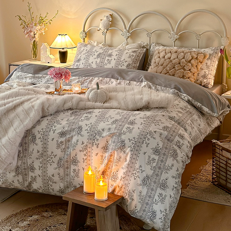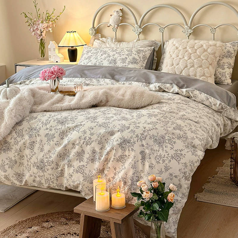 | nameOriginal | Lingyun 2024 new spring French retro style cotton small floral four-piece set pure cotton quilt cover three-piece bedding set |