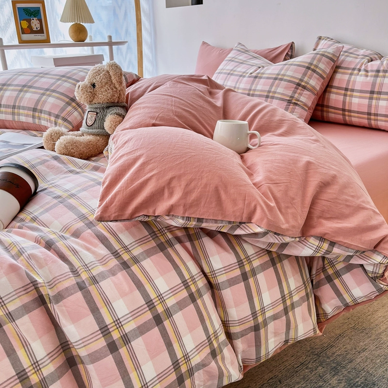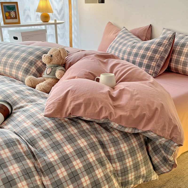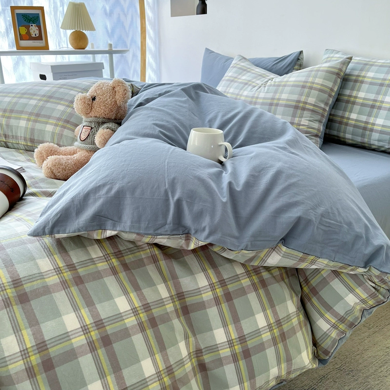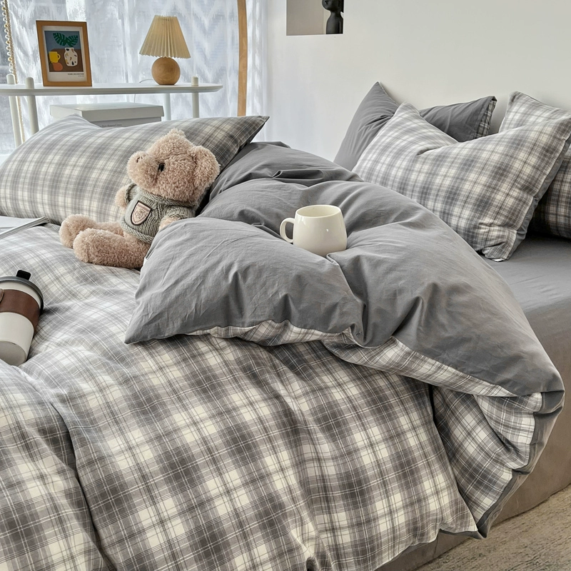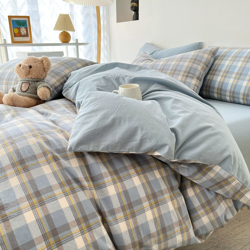 | nameOriginal | Lingyun 2024 new spring washed cotton quilt cover single piece simple plaid bed four-piece set non-cotton pure cotton |