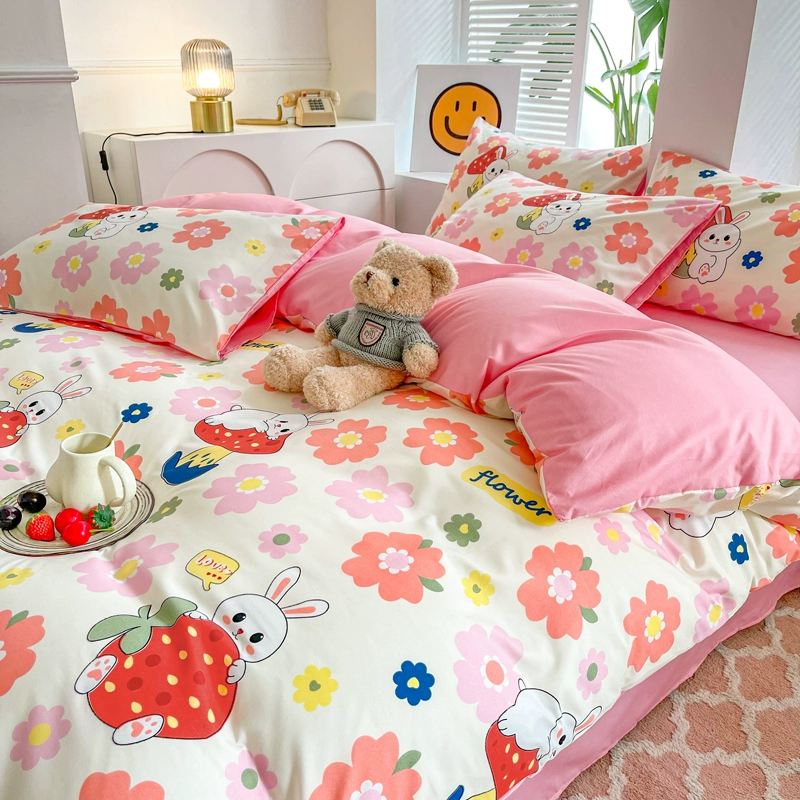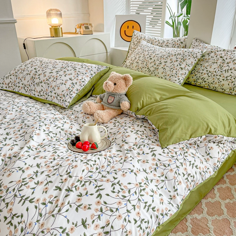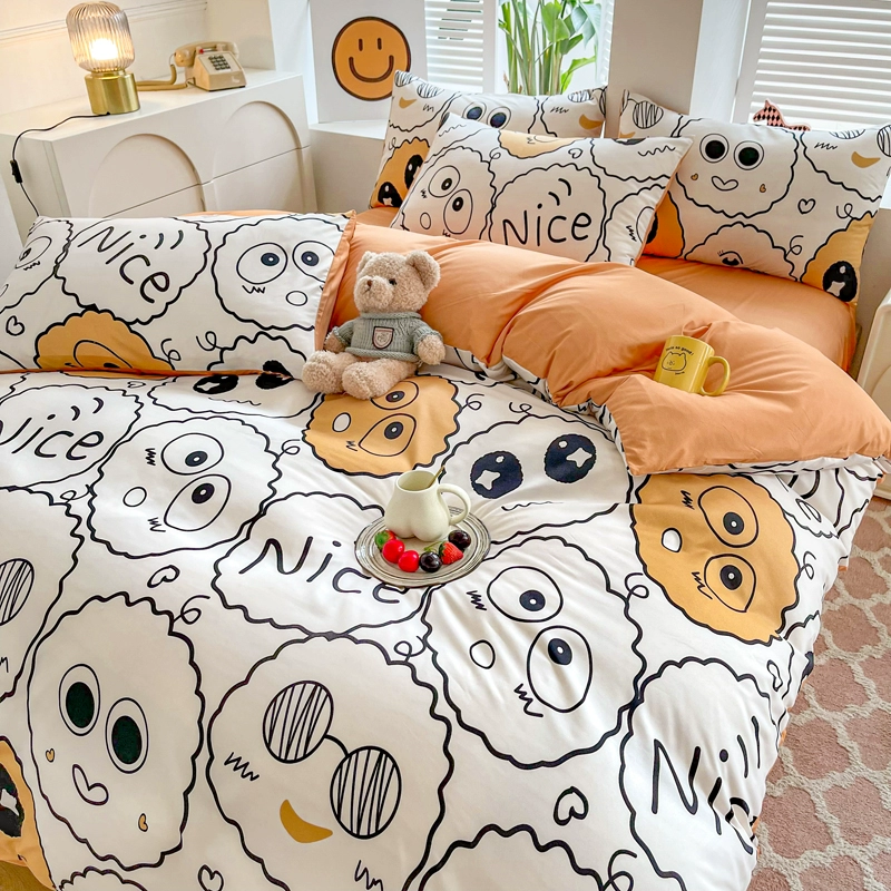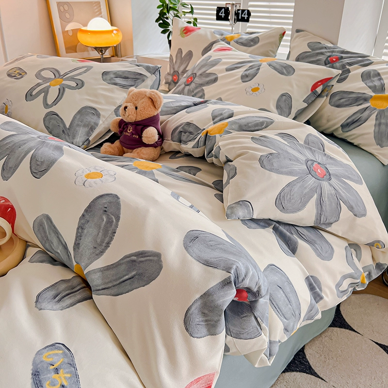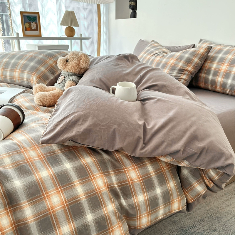 | nameOriginal | Lingyun 2024 new spring washed cotton quilt cover single piece simple plaid bed four-piece set non-cotton pure cotton |