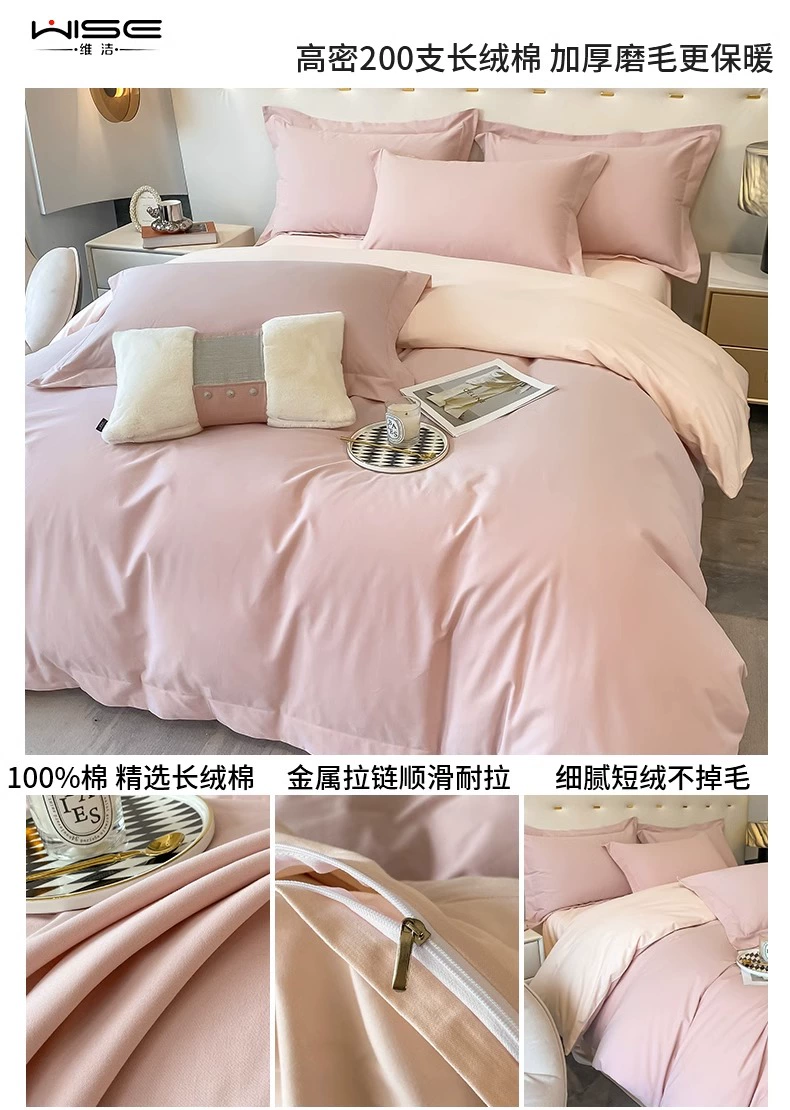 | nameOriginal | Lingyun 2024 new style 200-count thickened cotton brushed girly heart cream pink quilt cover single piece bed sheet four-piece set |