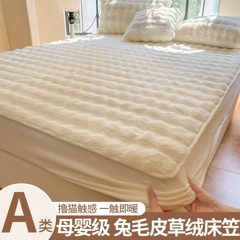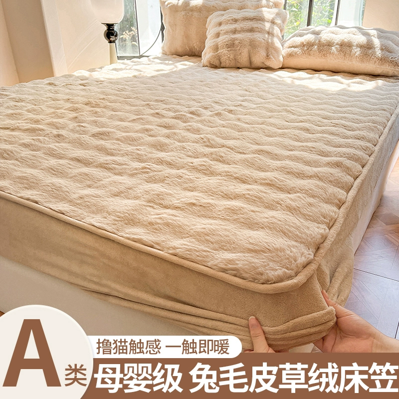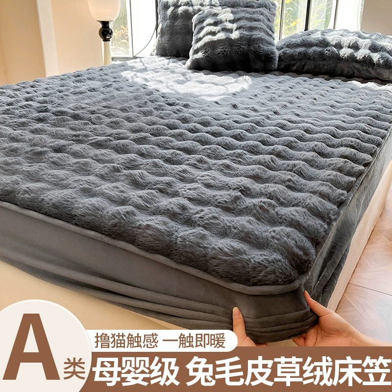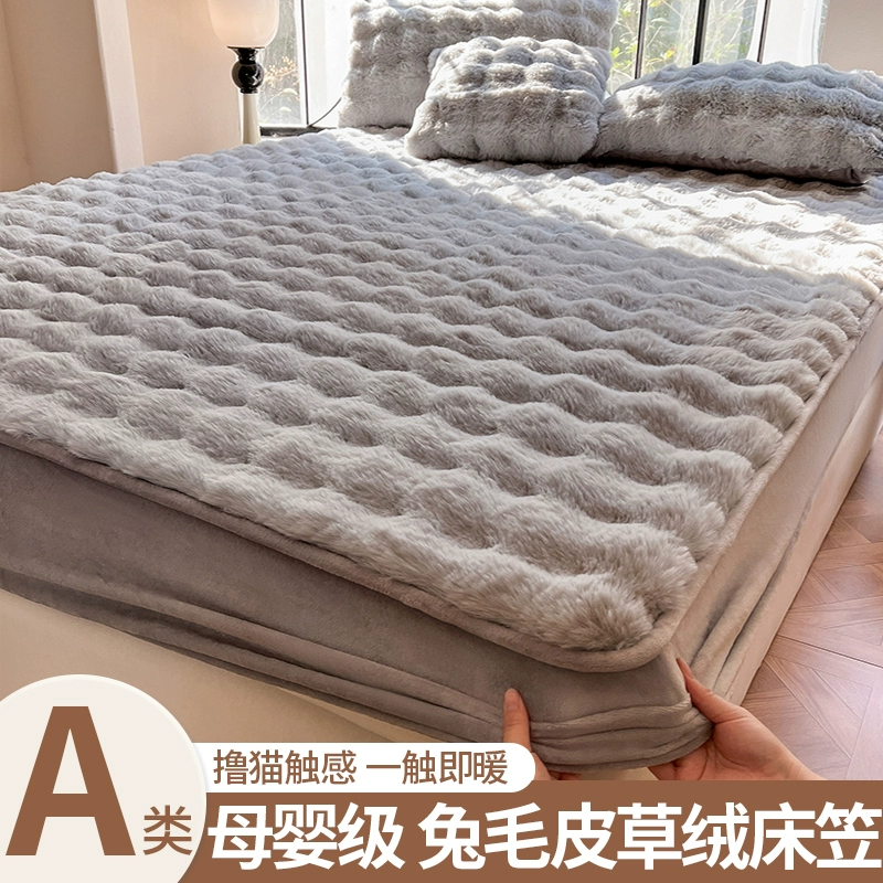 | nameOriginal | Lingyun 2024 winter new thickened rabbit plush bed sheet single three-piece set autumn and winter plush bedspread solid color for women |