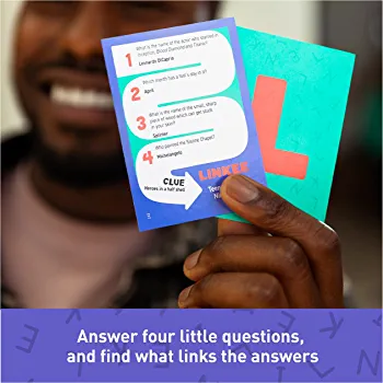 | nameOriginal | Linkee 2022 Edition: Answer 4 Trivia Questions, Shout Out What Links The Answers. Entertaining Family Quiz Board Game for Adults and Teens, Perfect for Family Game Night |