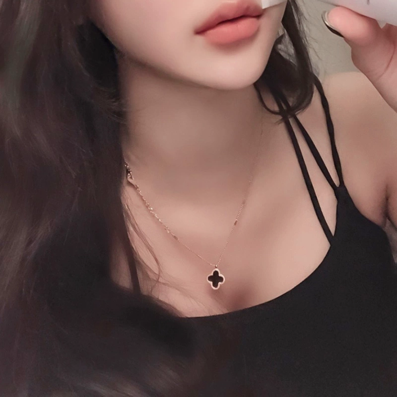 | nameOriginal | Lip chain four-leaf clover necklace for women 18k rose gold titanium steel pendant Japanese and Korean ins internet celebrity clavicle chain jewelry |