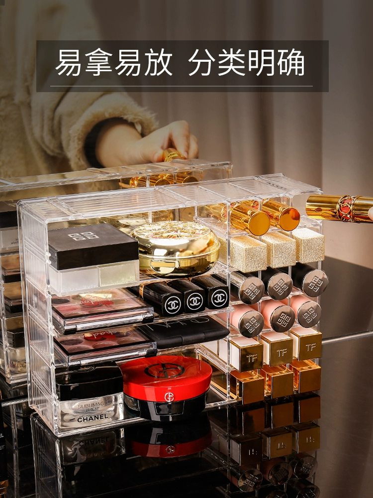 Lipstick powder eye shadow storage box desktop cosmetics storage rack dressing table transparent multi-grid acrylic storage box