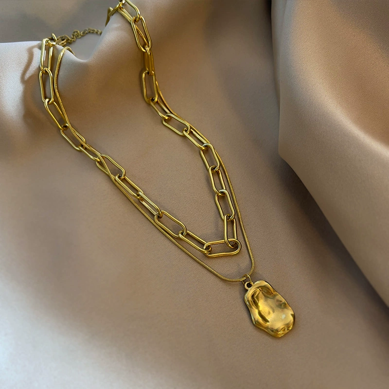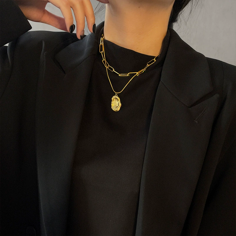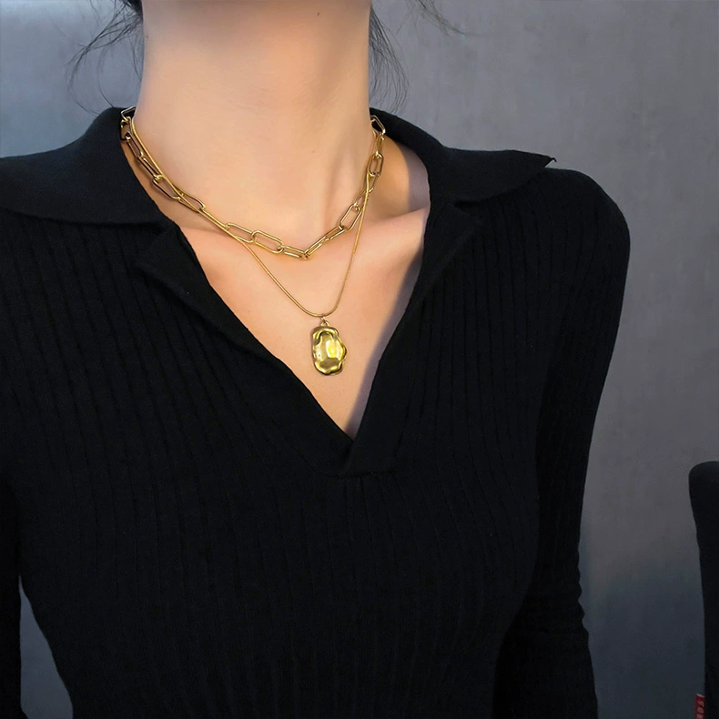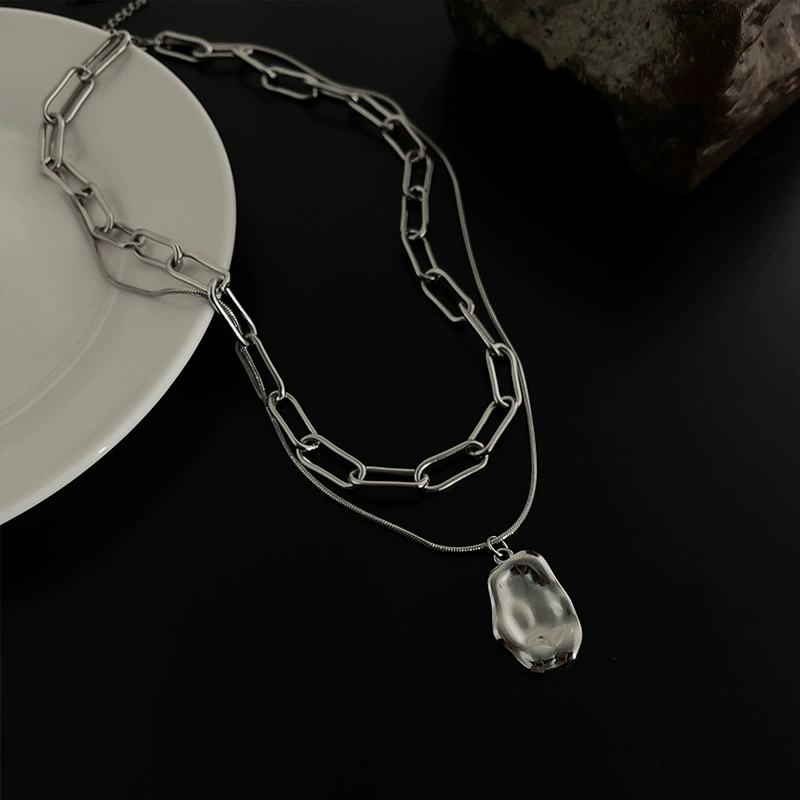 Liquid irregular personalized double-layer necklace for women, double-layer clavicle chain, metallic cold style hip-hop jewelry, titanium steel