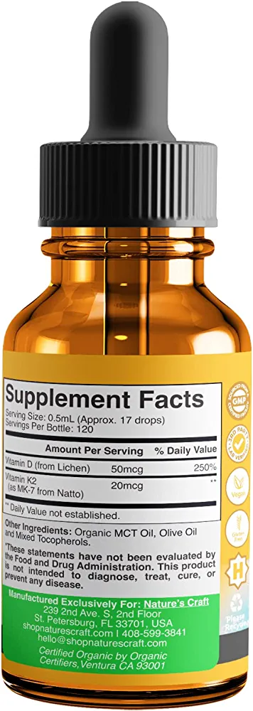 | nameOriginal | Vitamin D Drops with K-2 Vitamin – Liquid Vitamin D 5000 IU and MK7 K2 Vitamin Supplement for Immune Support and Joint Health – Liquid Vitamin D3 with K2 Vitamin MK7 and MCT Oil for Better Absorption |