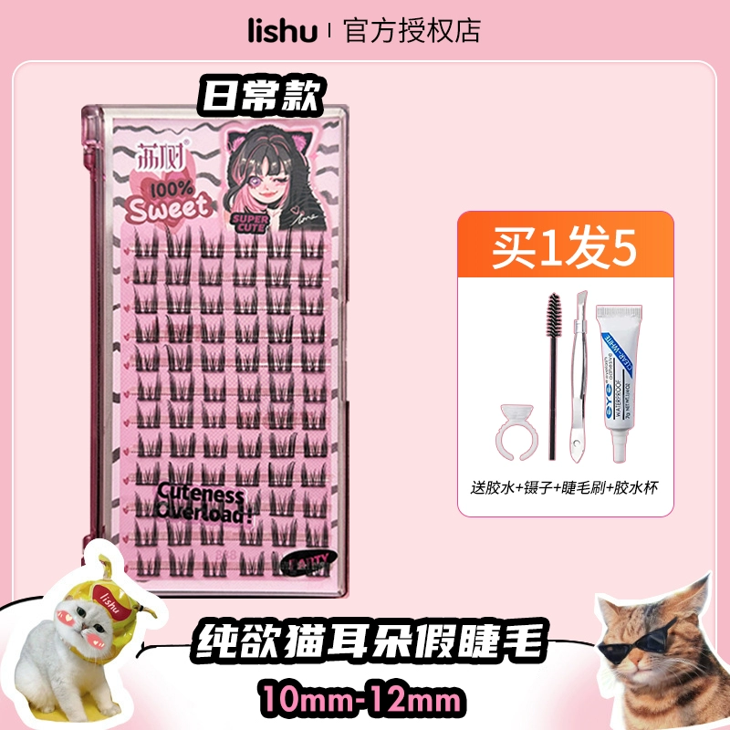Lishu False Eyelashes Girl Group Idol Cat Ears Natural Simulation Fairy Novice No Makeup Female Single Cluster Lazy Trilogy