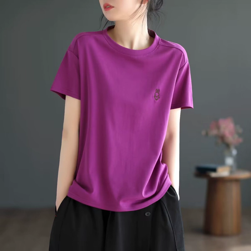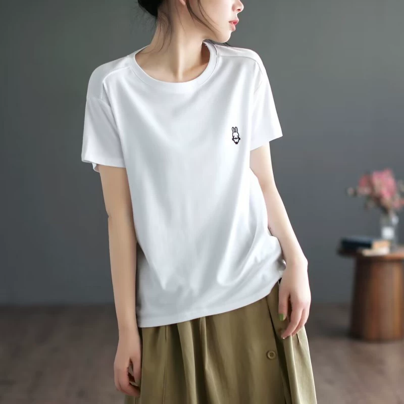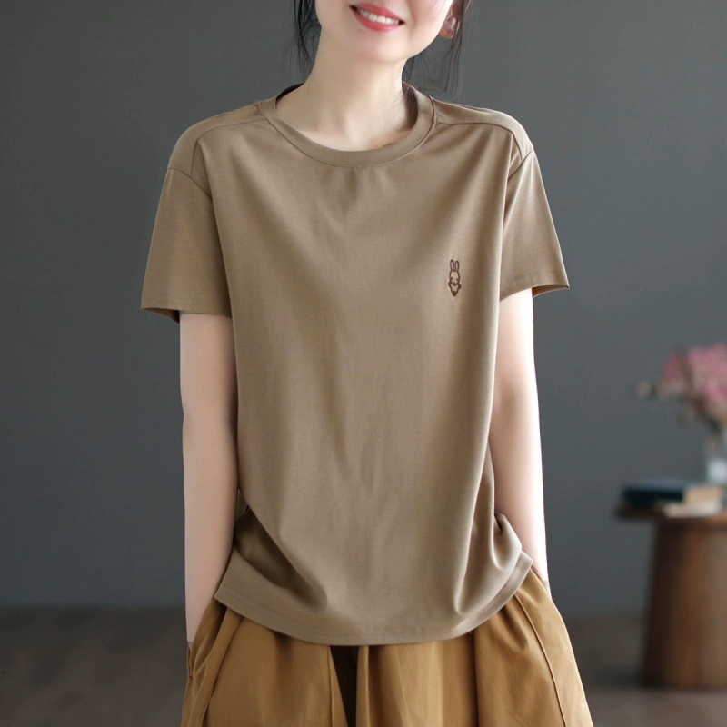| nameOriginal | Literary casual short-sleeved t-shirt top embroidery |