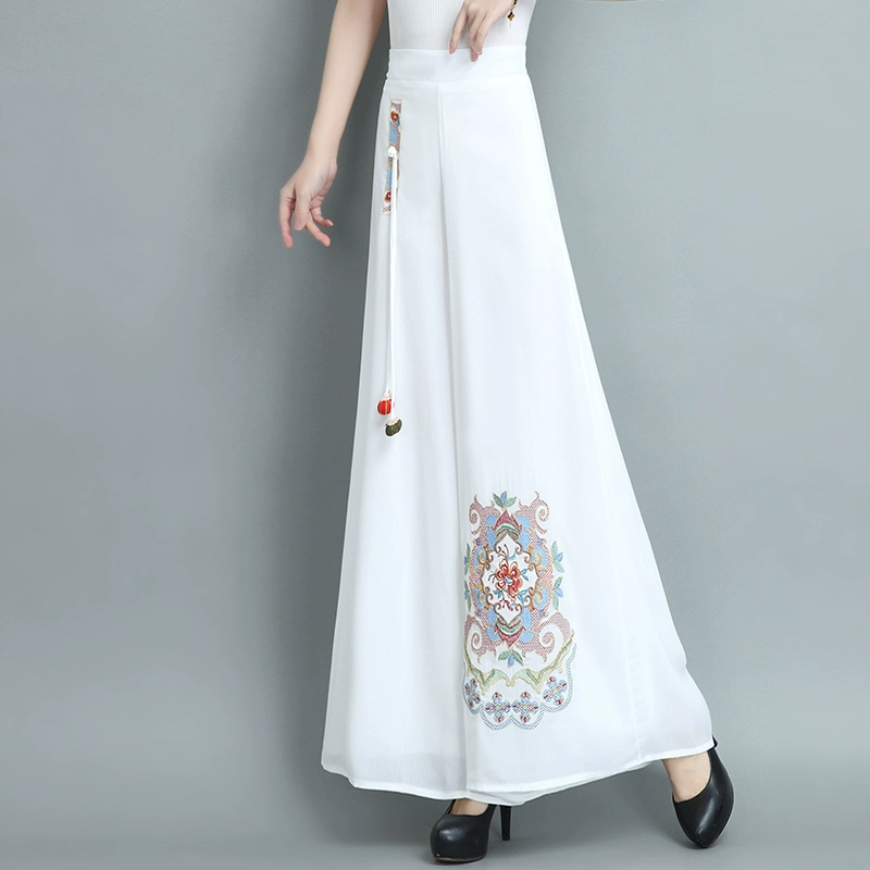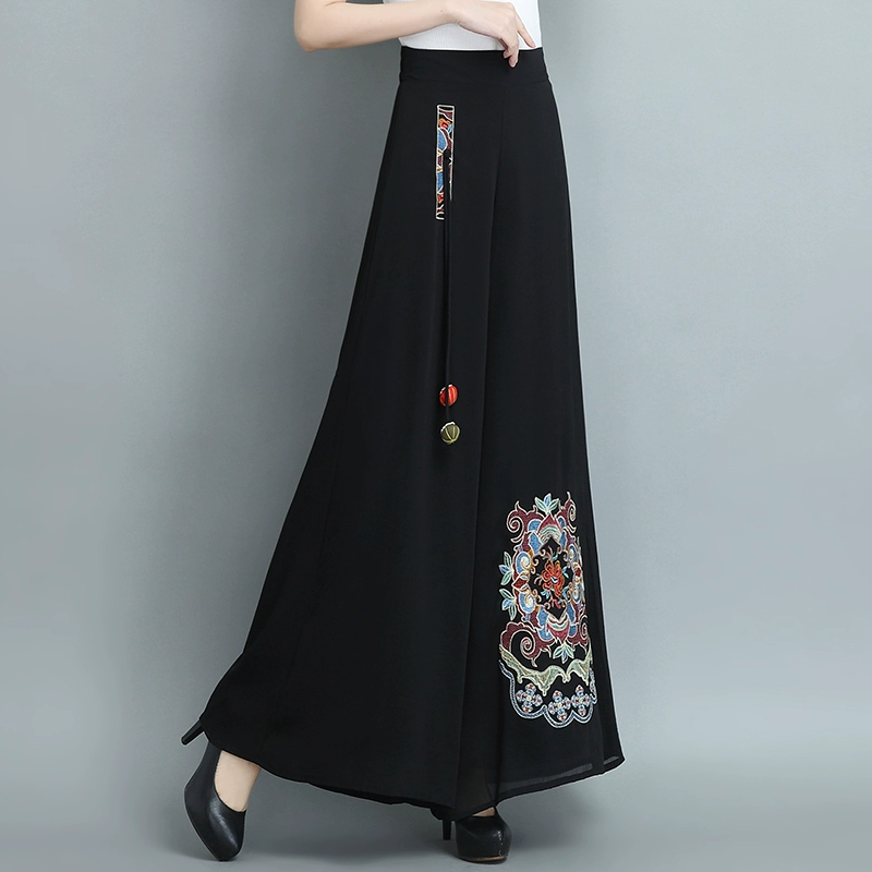 | nameOriginal | Literary ethnic style embroidered high waist casual chiffon pants |