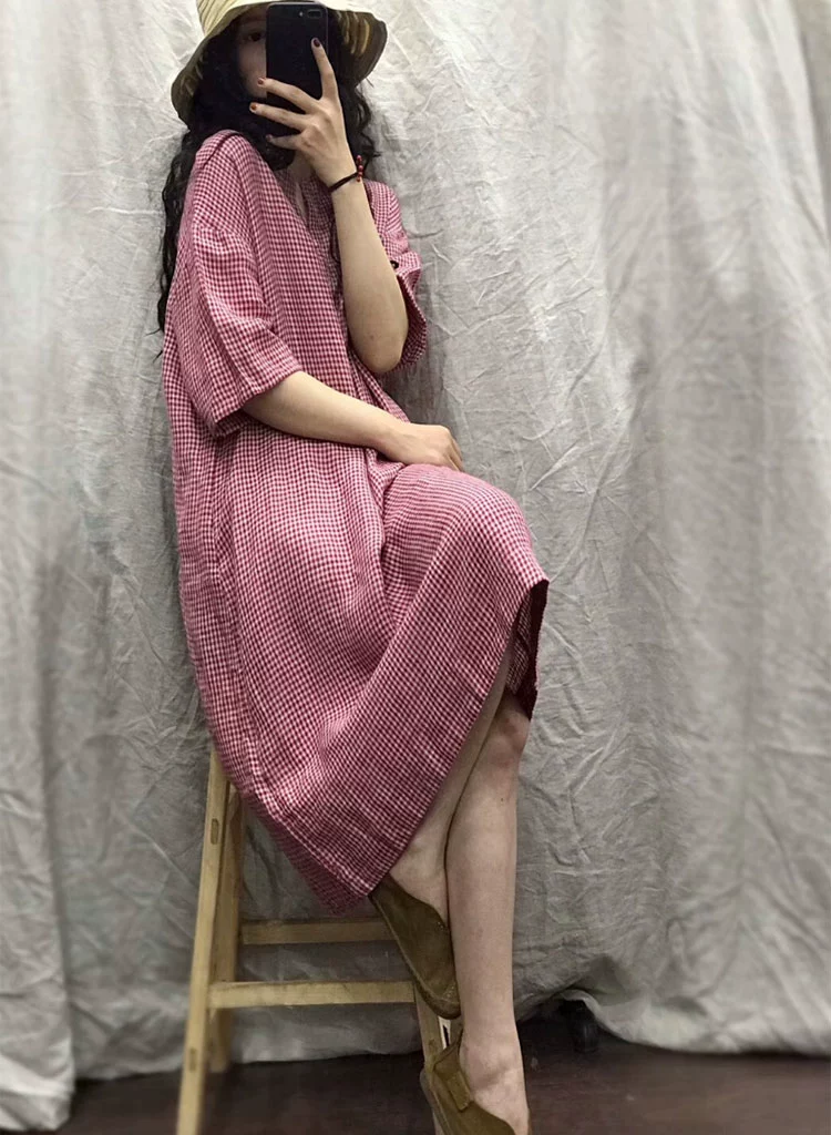 | nameOriginal | Literary fat mm cotton and linen short-sleeved loose summer dress with hidden flesh |