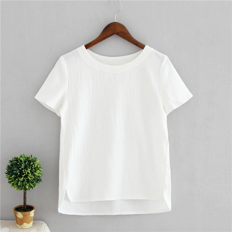 | nameOriginal | Literary homemade solid color casual linen top short sleeves |