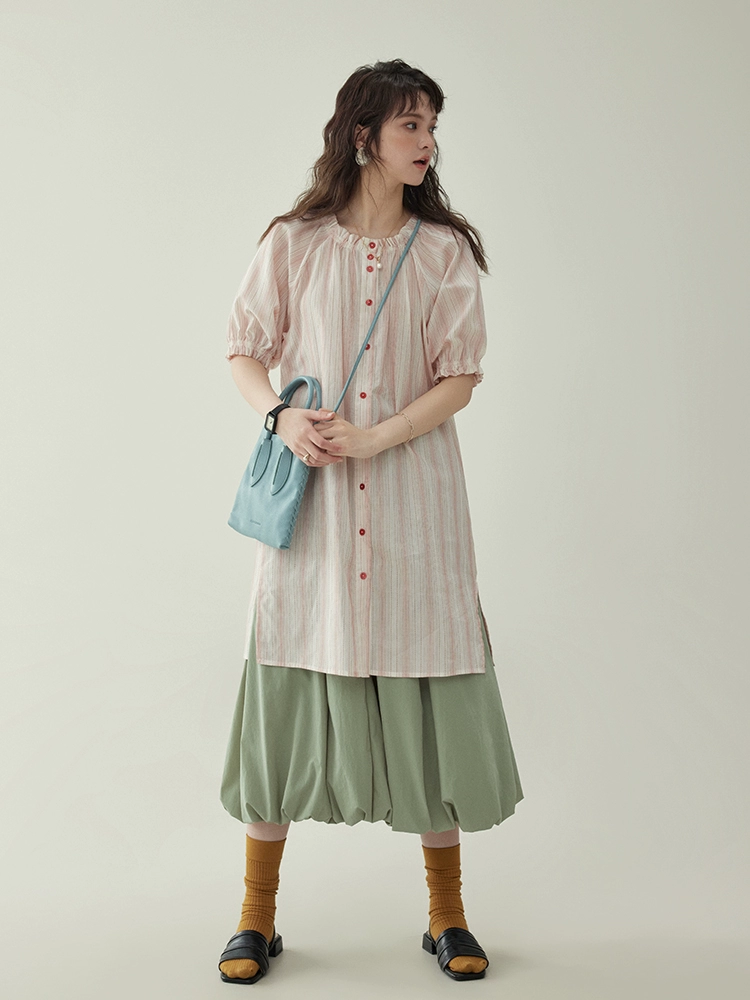 | nameOriginal | Literary original striped summer short-sleeved mid-length skirt |