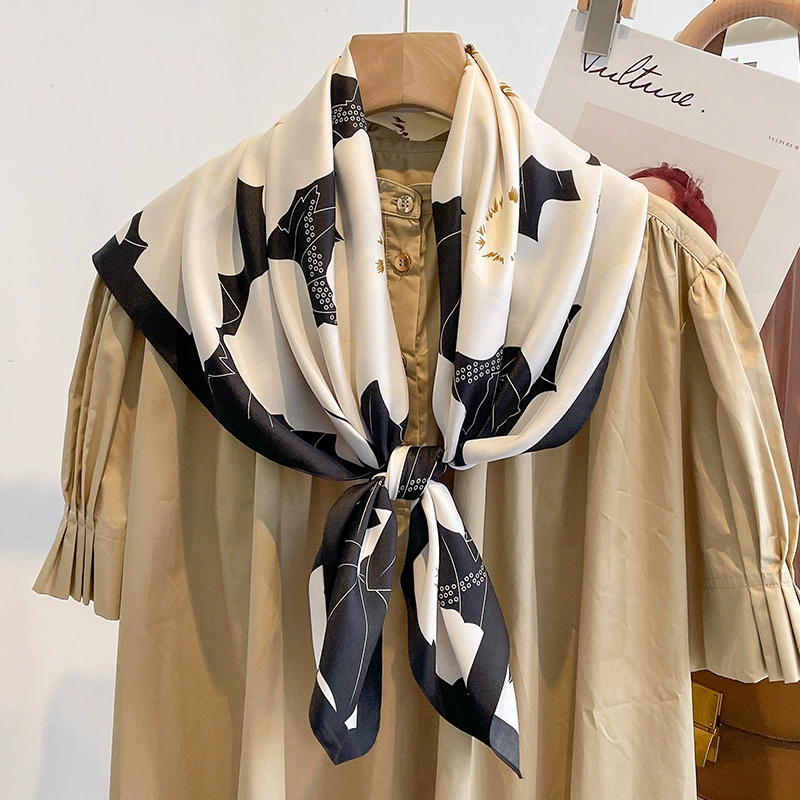 | nameOriginal | Literary style beige brown printed large square scarf silk scarf for women new spring and summer decoration versatile shawl scarf dual use |