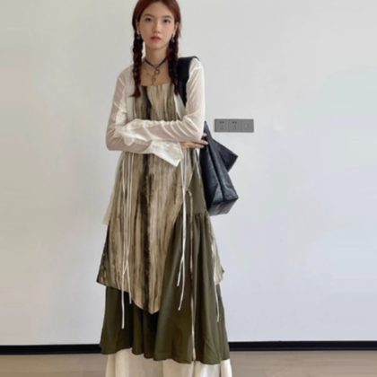 Literature and art tie -dye national style retro irregular dress