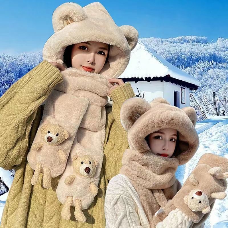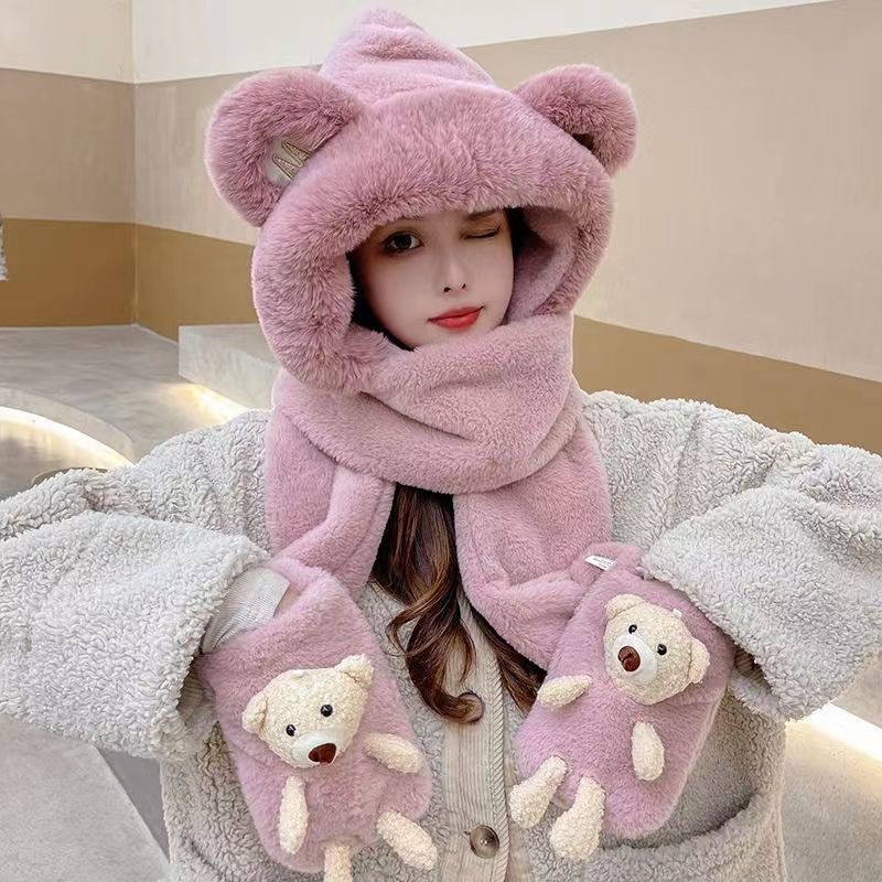 | nameOriginal | Little Bear Hat Children's Winter Cute All-match Warm Fluffy Hat Gloves Hooded Scarf One-piece Trendy Set |