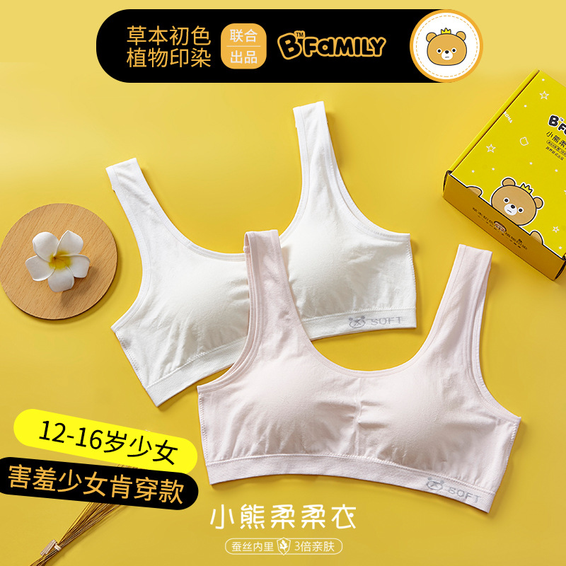 | nameOriginal | Little Bear Rourou Clothes Girls' Bra Two-stage Development Underwear Anti-bump Junior High School Students Anti-running Small Vest |