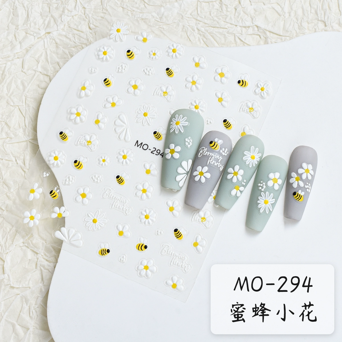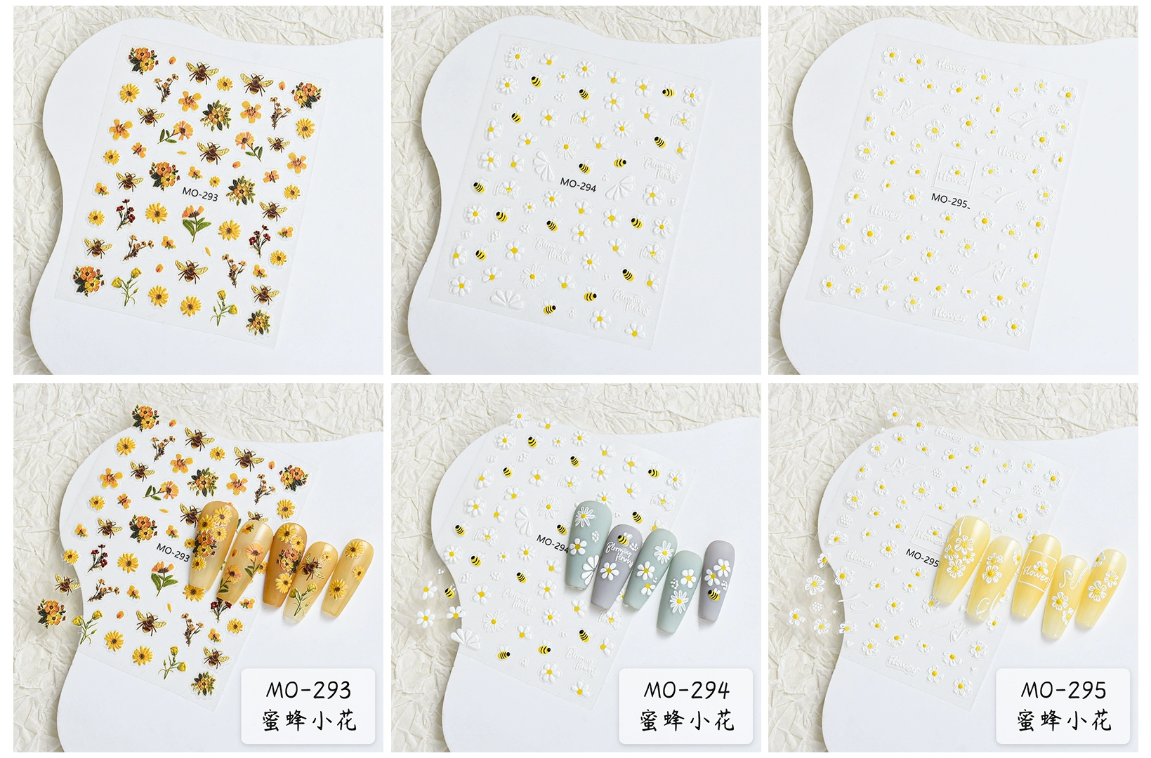 Little Bee Retro Yellow Flower Summer Nail Art Sticker