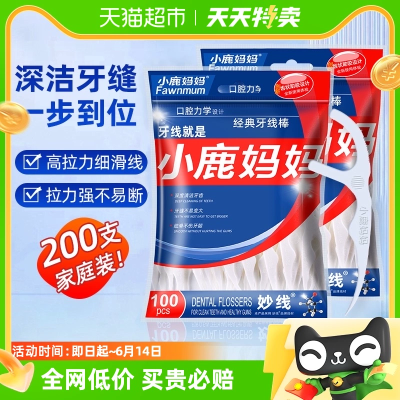 | nameOriginal | Little Deer Mother Ultra-fine Dental Floss Stick Classic Portable Family Pack 100 Count * 2 Bags Toothpick Floss Box Slim Disposable |