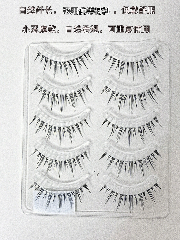 Little devil false eyelashes for women, natural simulated nude makeup, reusable cute eyelashes, ultra-fine stems, whole eyelashes