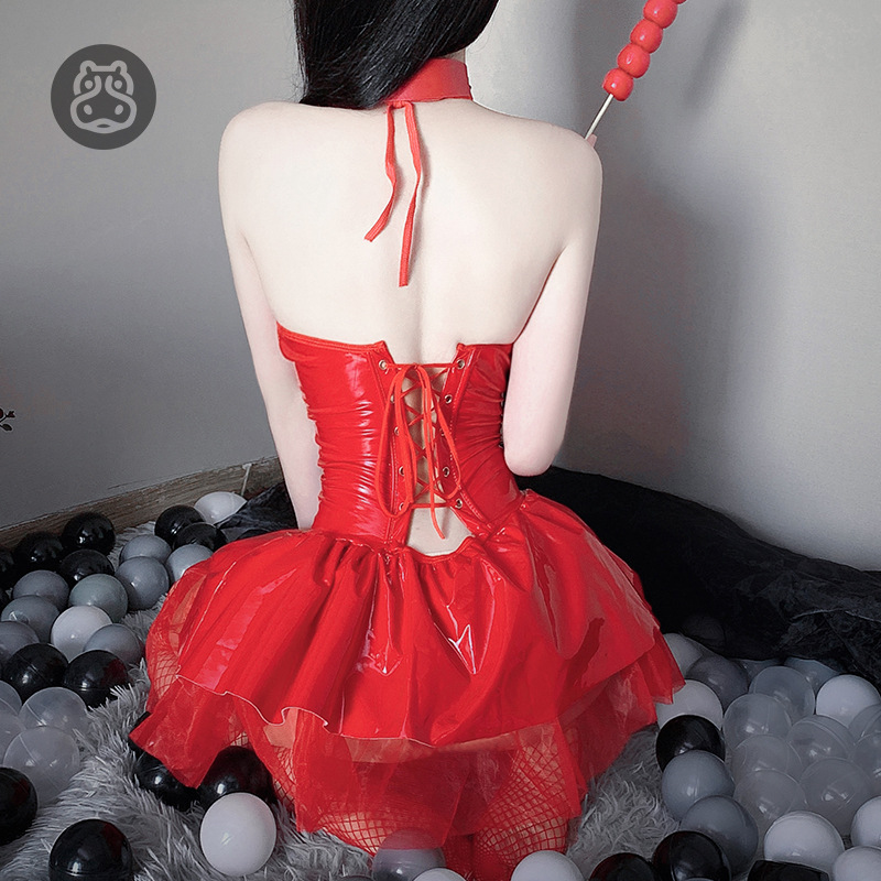| nameOriginal | Little Devil leather skirt sexy glossy PU halter lace-up skirt suit Japanese jk uniform COS two-dimensional women's clothing |