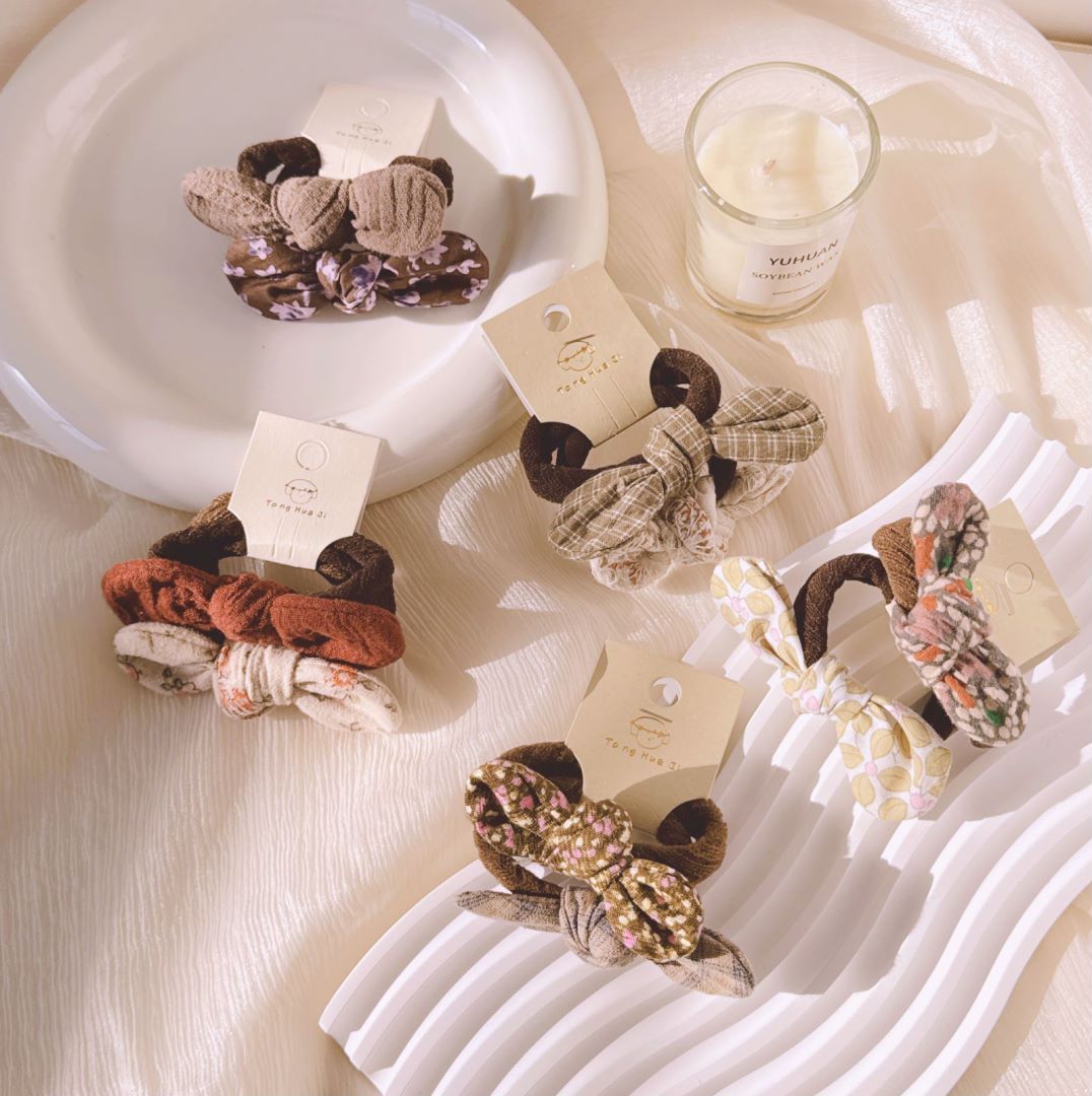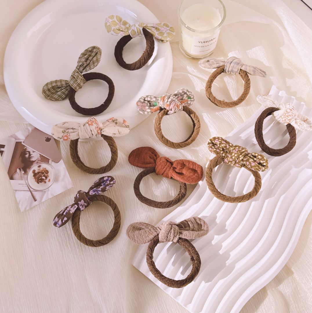 | nameOriginal | Little girl Mori fabric small floral bow tie hair band children's vintage knotted pair baby hair rope |