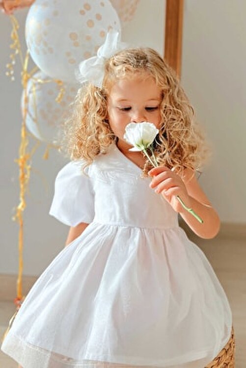 | nameOriginal | Little Honey Bunnies Broken White Color And Shimmer One Shoulder Organza Dress |