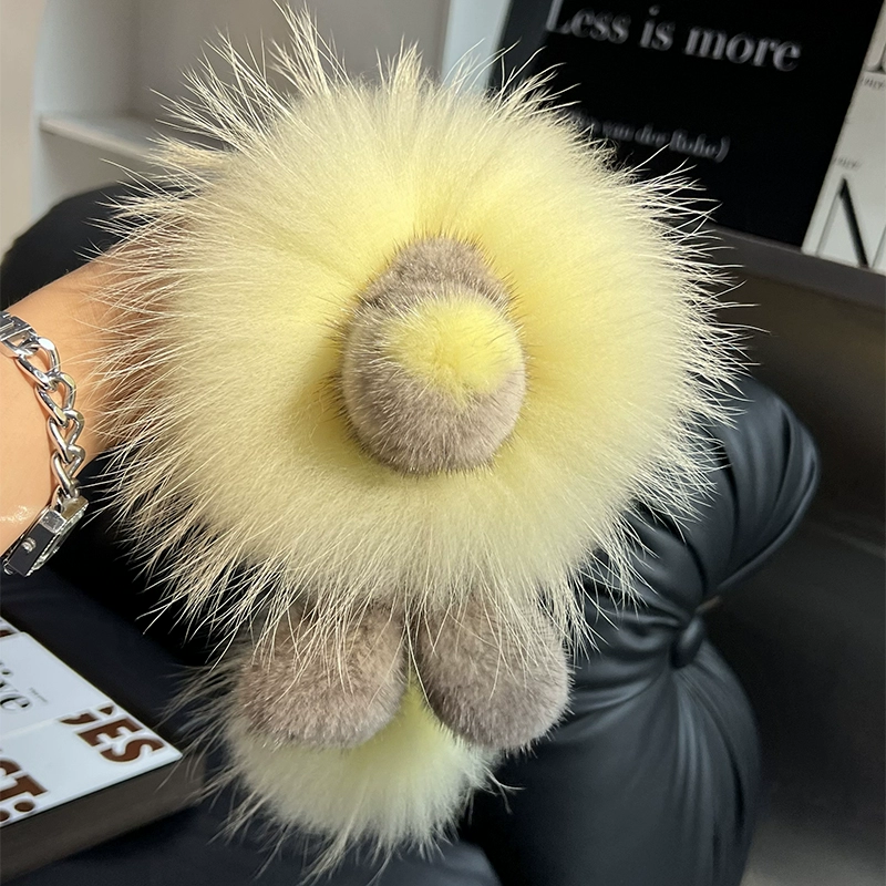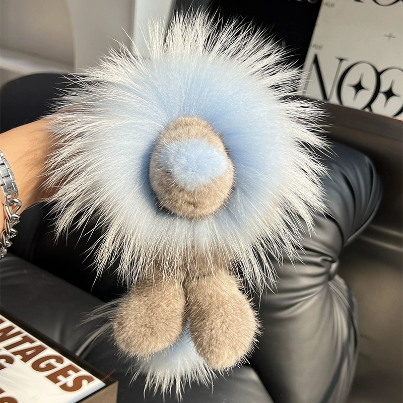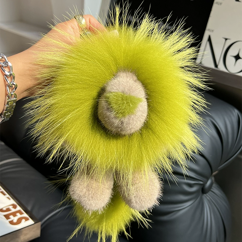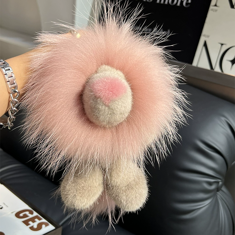 Little Lion Real Mink Fur Internet Celebrity Car Keychain