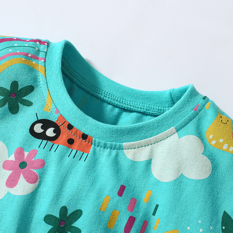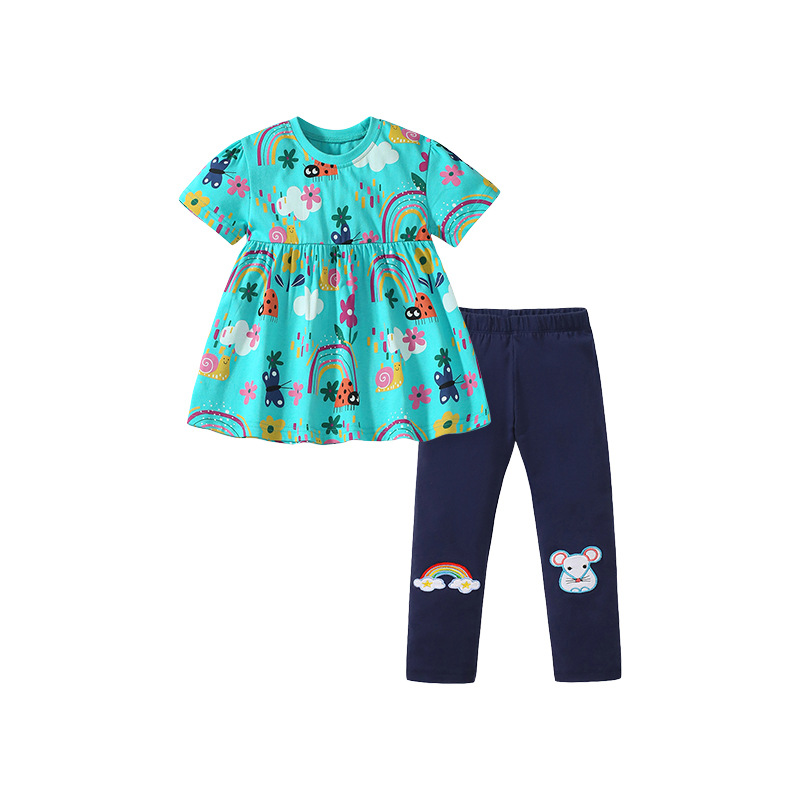 Little maven2024 summer girls’ short-sleeved skirt suit children’s printed two-piece European and American cartoon children’s clothing