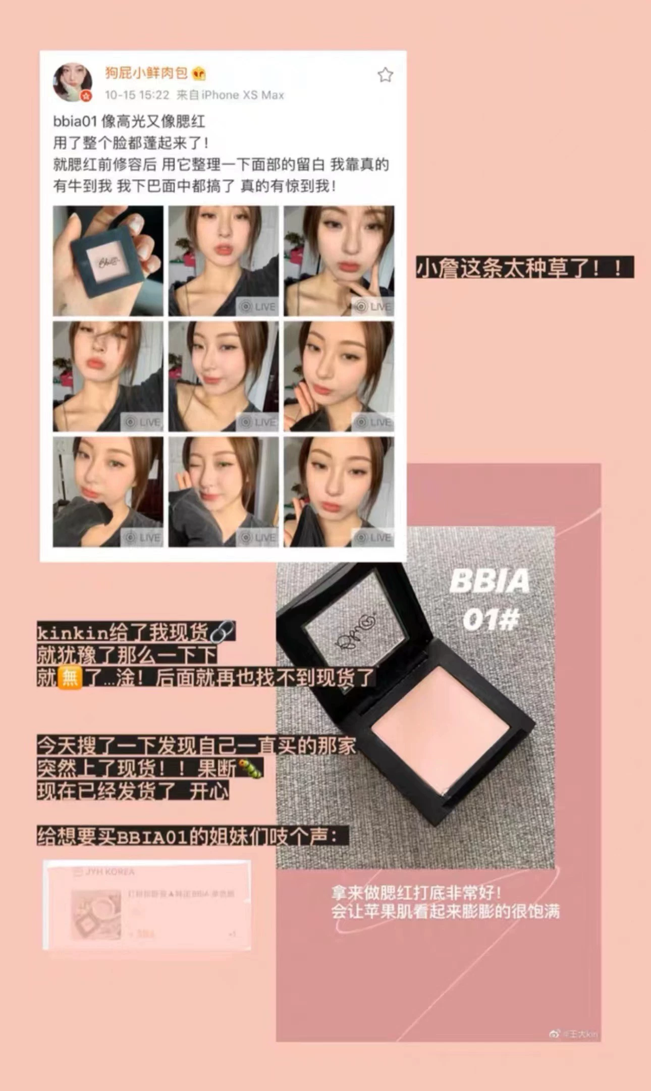 Little Monkey recommends bbia's new single color blush cream 01 shrinking color palette 02 blush mud female 06 blush purple expanding color
