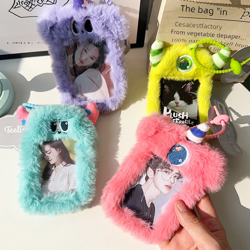 | nameOriginal | Little Monster plush card cover cute bus card campus card meal card certificate protective cover dopamine Plush Bag pendant |
