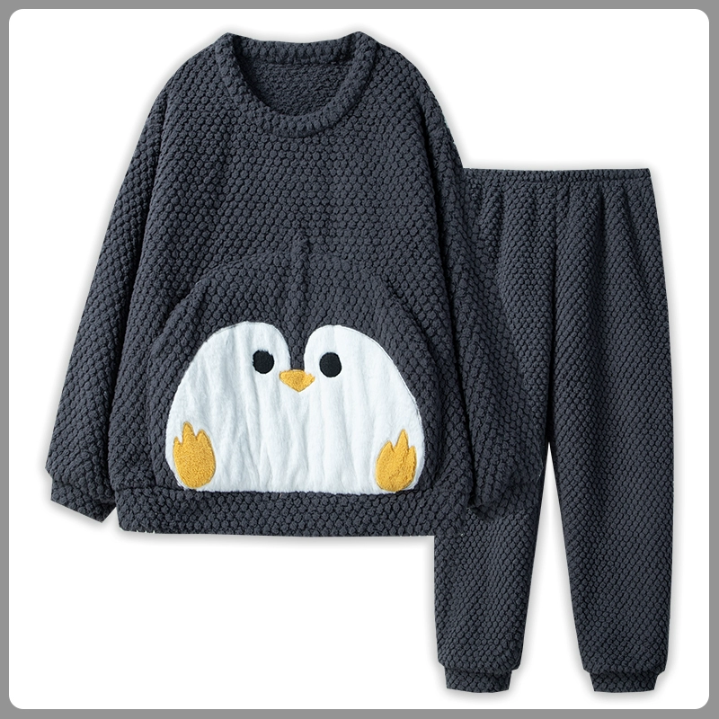 | nameOriginal | Little penguin! Coral velvet pajamas for women in autumn and winter plus velvet and thickening for students cute cartoon winter home clothes set |