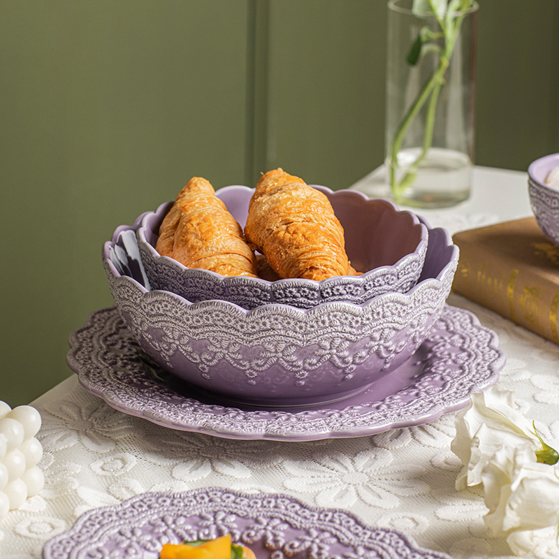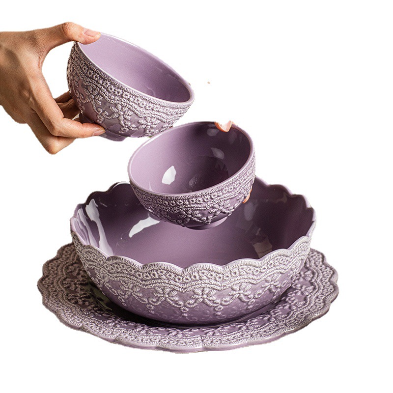 | nameOriginal | Little Pottery Princess's Dress French Ceramic Tableware Embossed Lace Dinner Plate Rice Bowl Salah Bowl Western Food |
