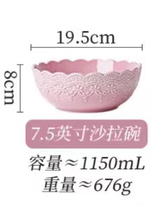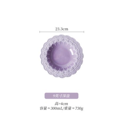 | nameOriginal | Little Pottery Princess's Dress French Ceramic Tableware Embossed Lace Dinner Plate Rice Bowl Salah Bowl Western Food |