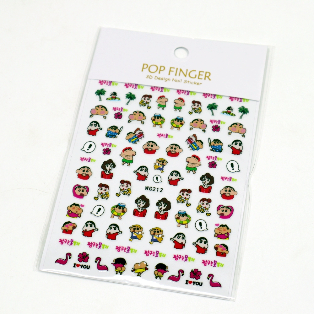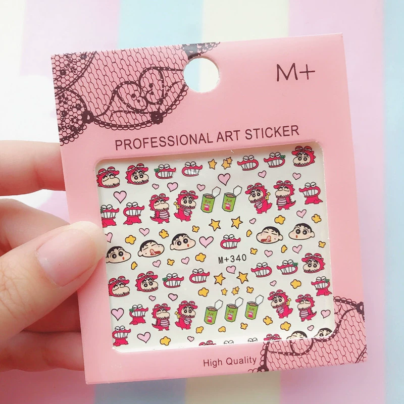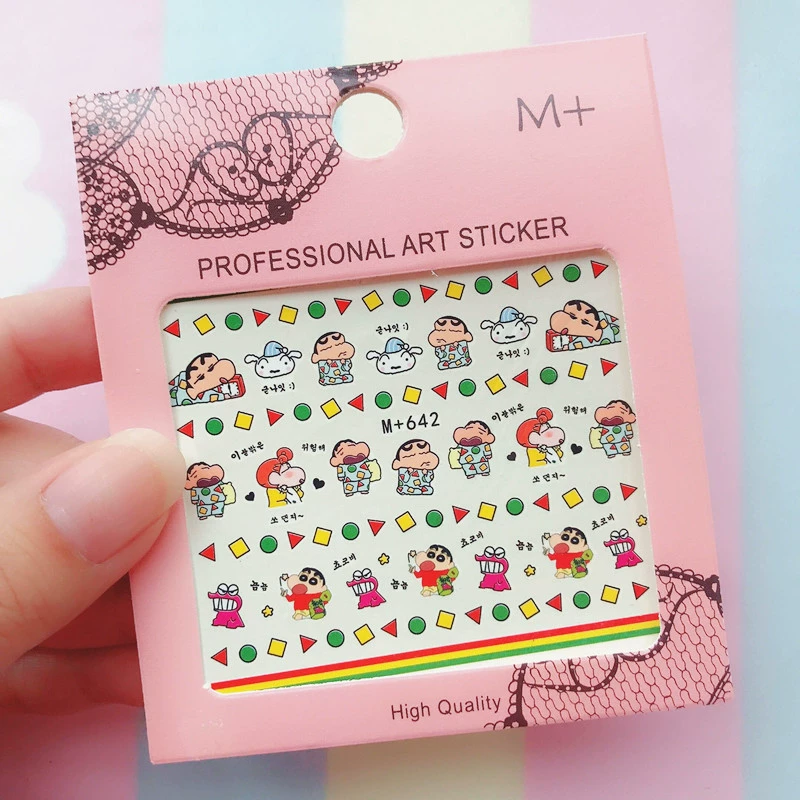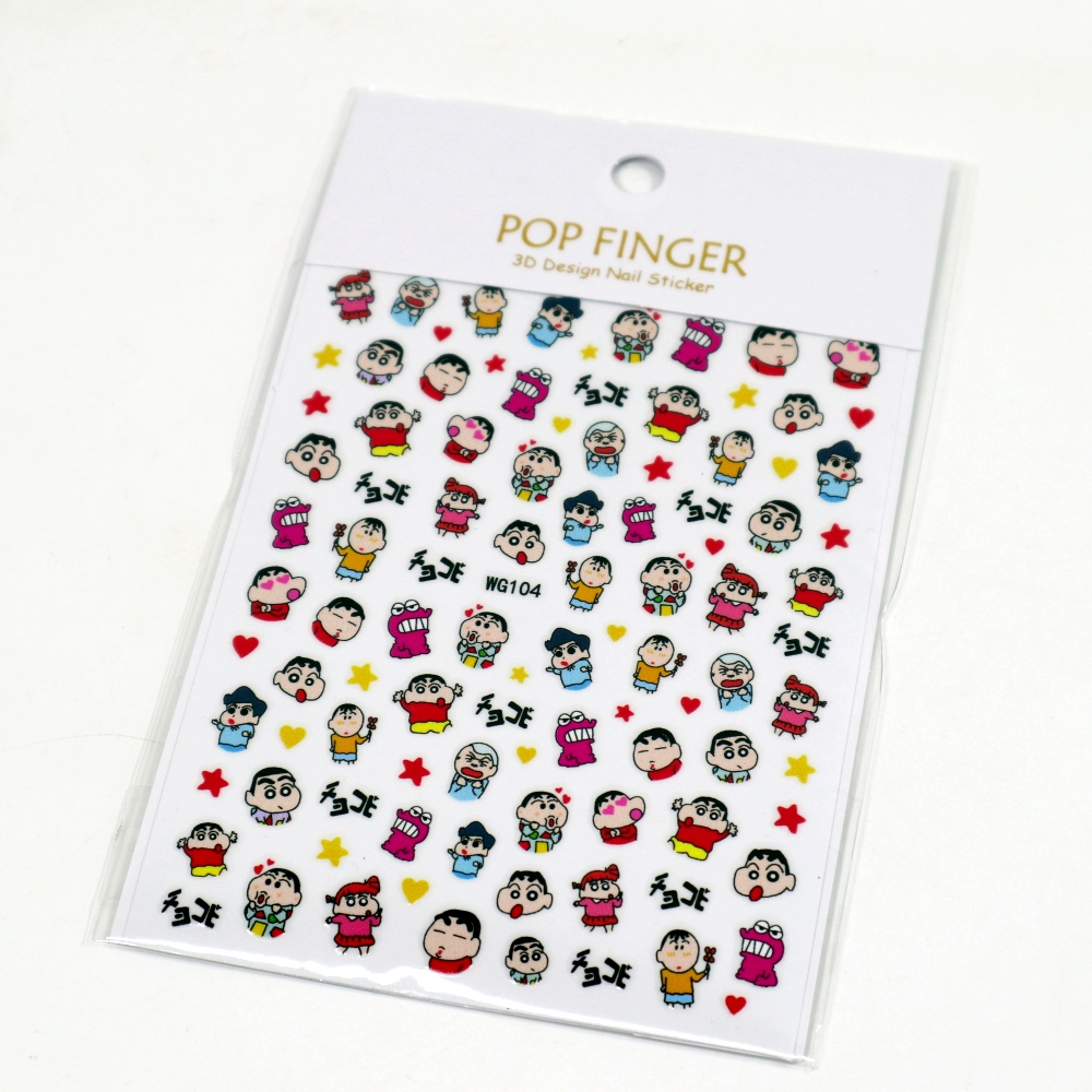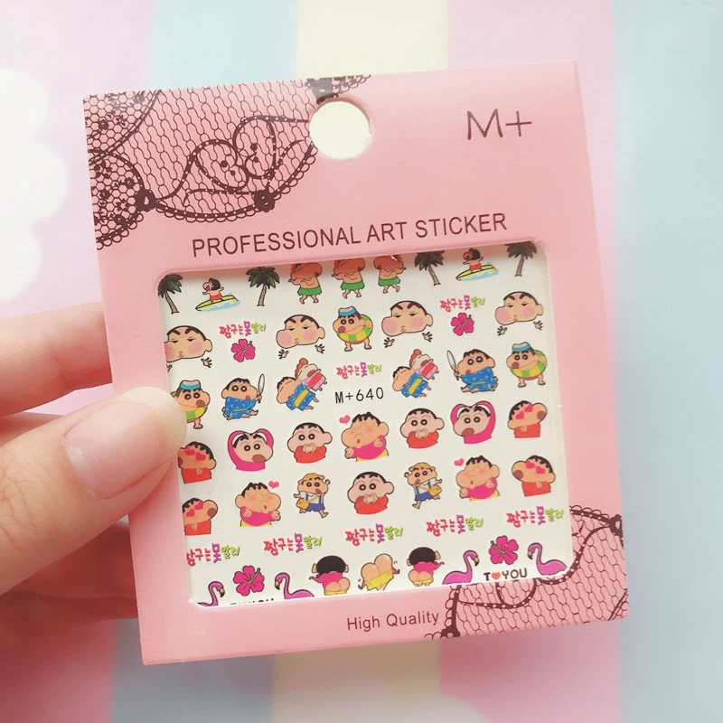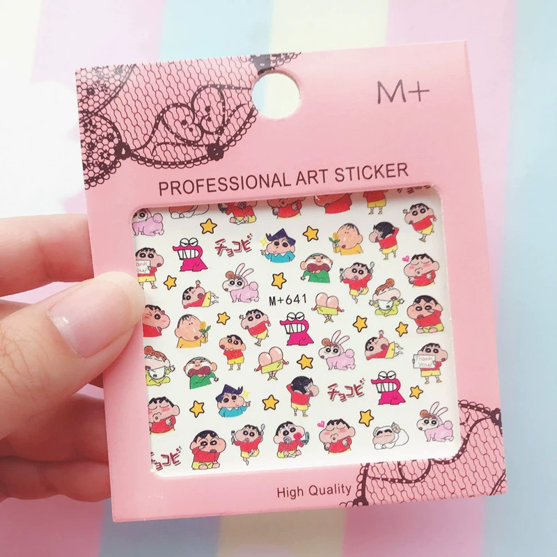 Xiaohongshu Like Crayon Shin -new three -dimensional relief nails sticker Japanese cartoon animation waterproof gel can be torn