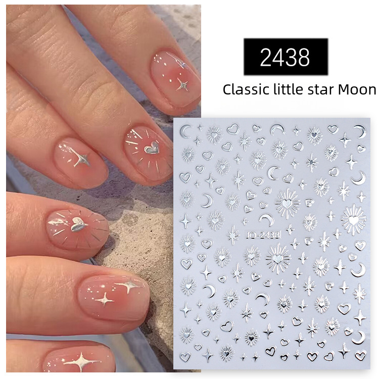 Little Red Book hot stamping European and American star Moon Vintage totem waterproof silver crescent star mango nail stickers decorations