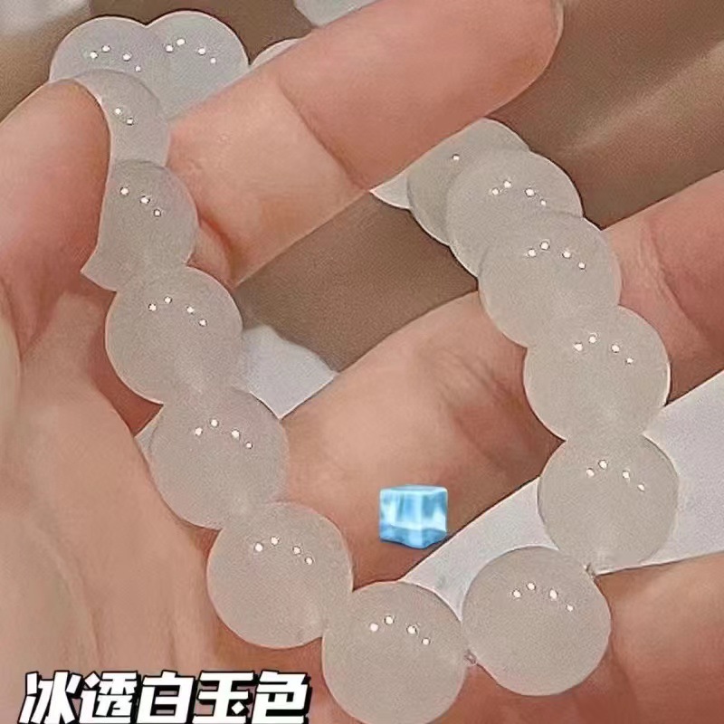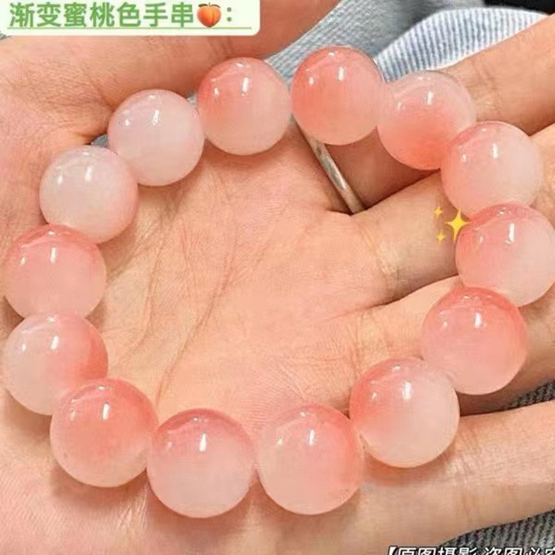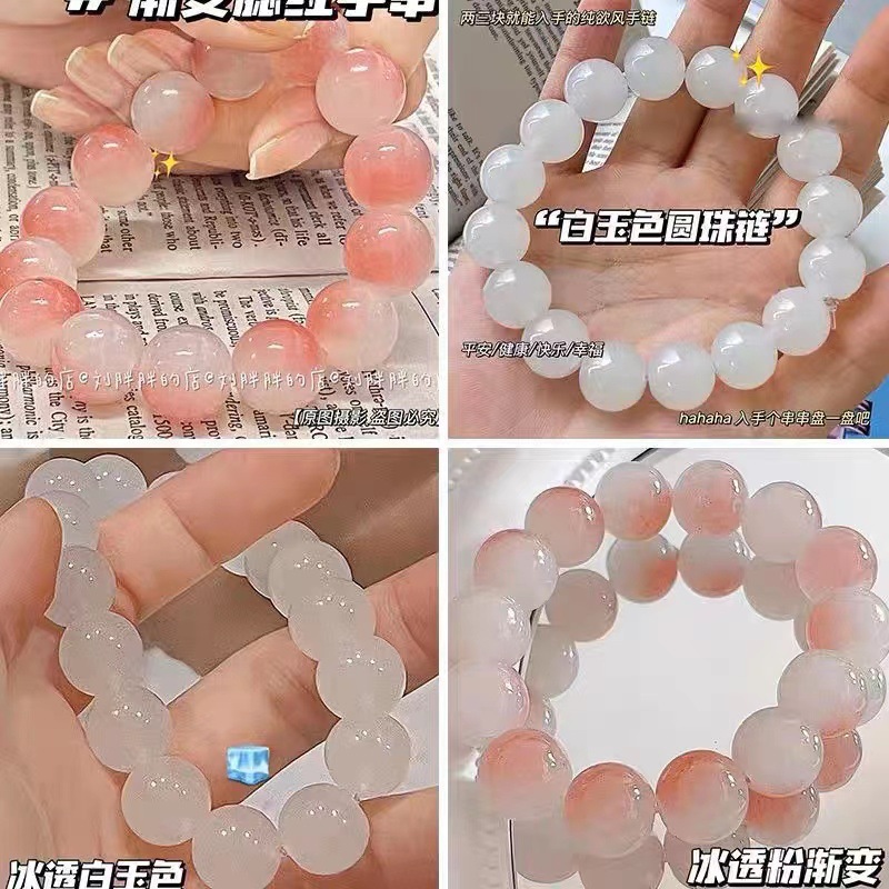 | nameOriginal | Little red book ice through white jade glass bracelet around the finger soft gradient pink student version plate play beads bracelet wholesale |