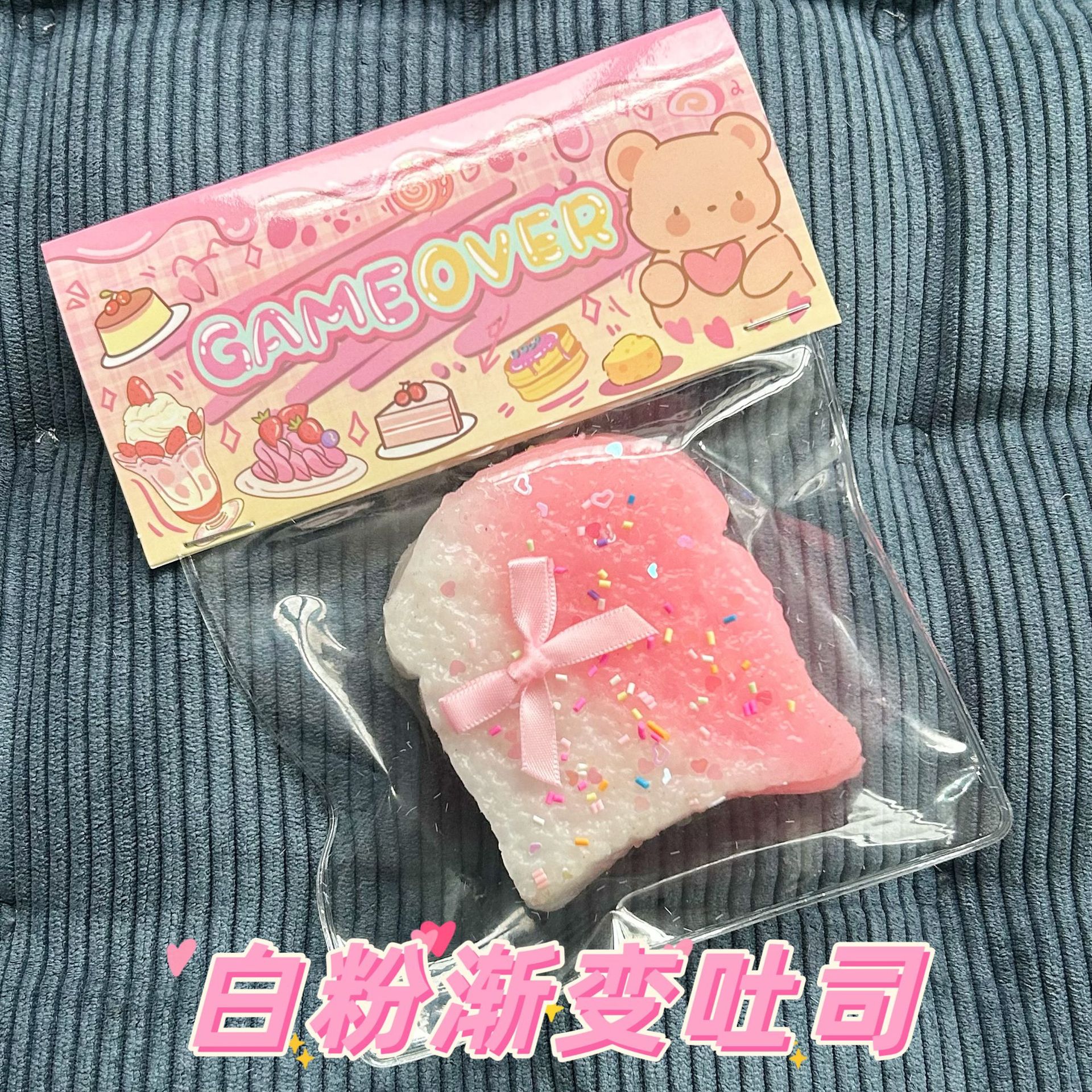 | nameOriginal | Little Red Book large simulation toast pinch music tpr food and play waffle decompression toy decompression bear slow rebound |