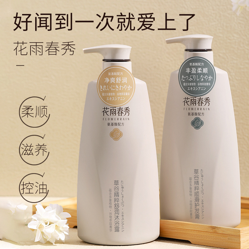 Little Red Book Same Style Flower Rain Spring Show Wash and Protect Lightweight Oil Control Anti-dandruff Shampoo Conditioner Body Soap Set