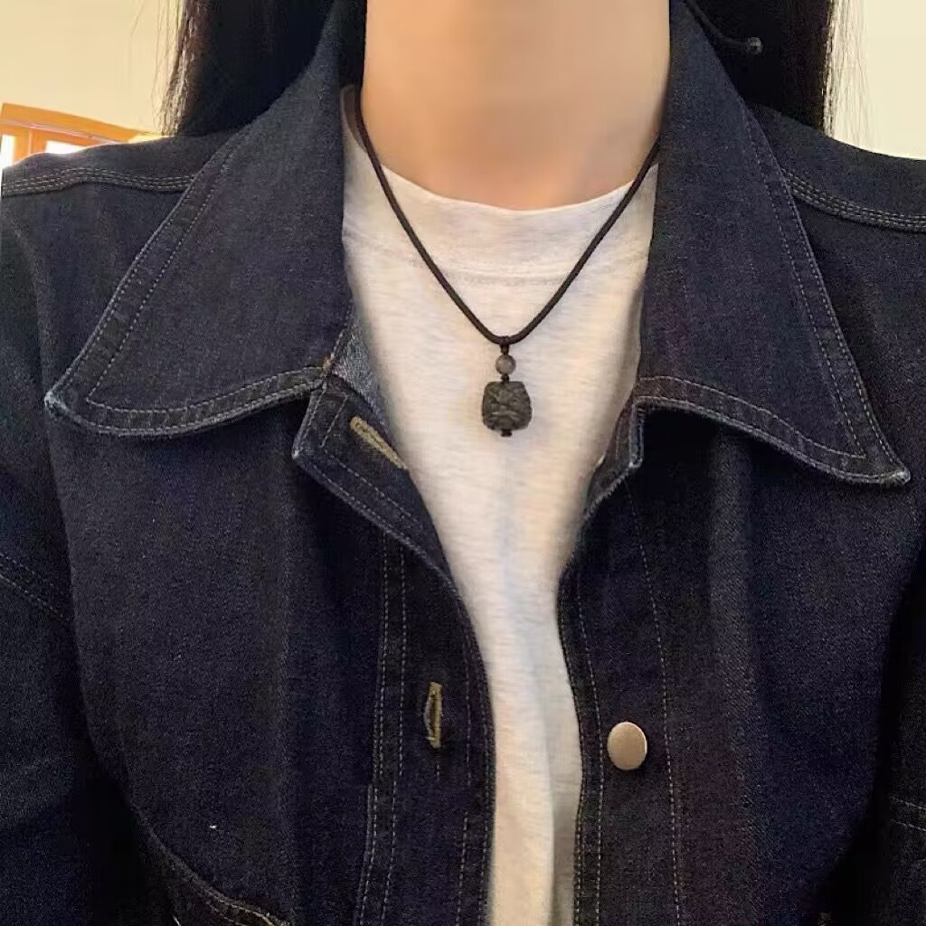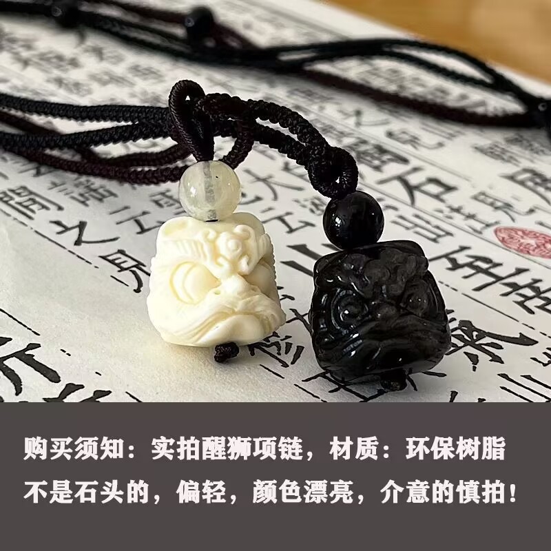 | nameOriginal | Little Red Book Same Style Lion Wake Pendant Silver Obsidian Lion Wake Lock Bone Chain Niche High-end Necklace National Style Fashionable All-match Women |