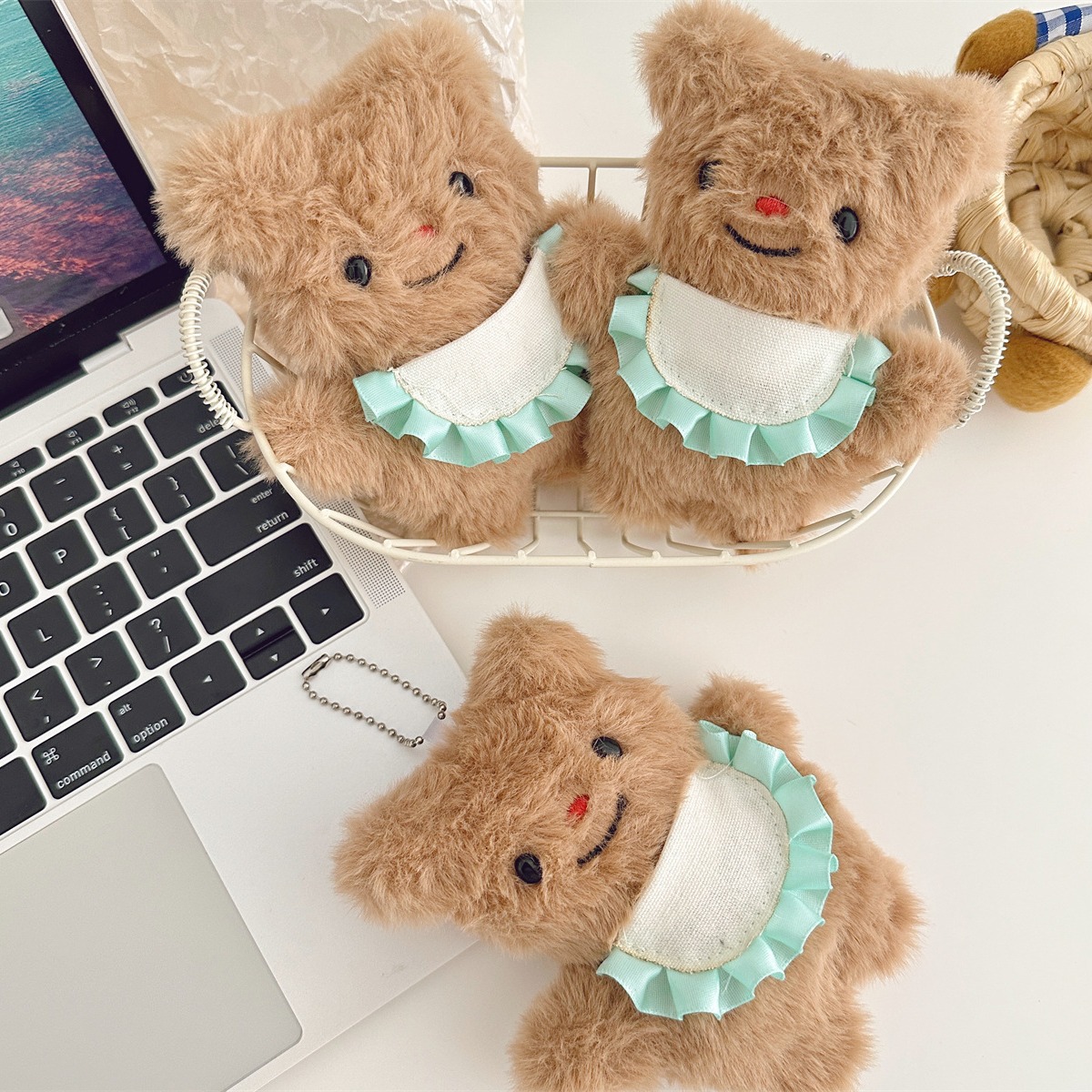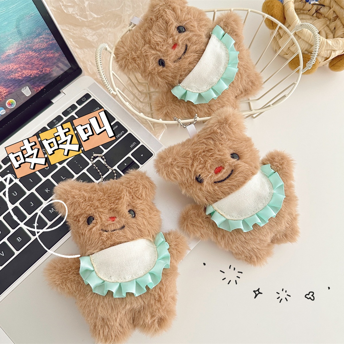 Little Red Book Squeaky Apron Bear Doll Pendant Doll Schoolbag Hanging Chain Plush Pendant Gift for Girls