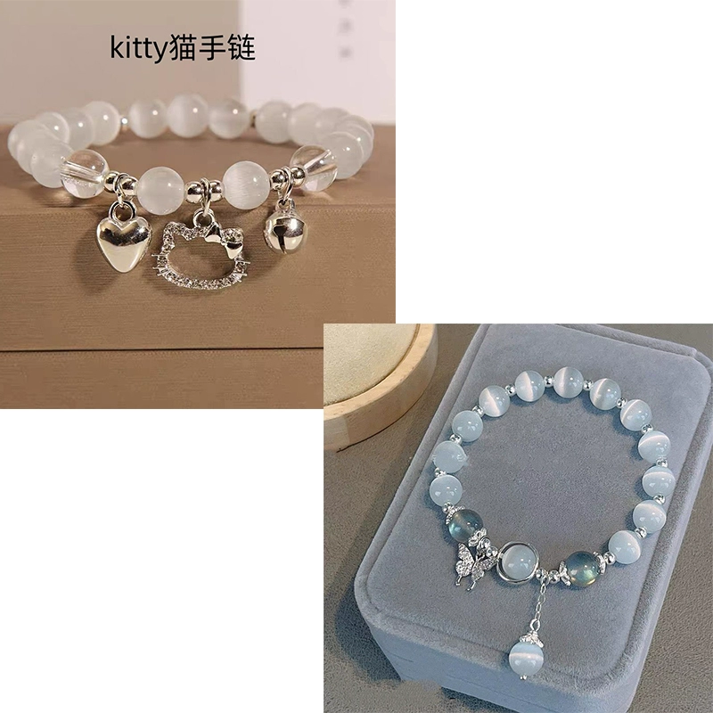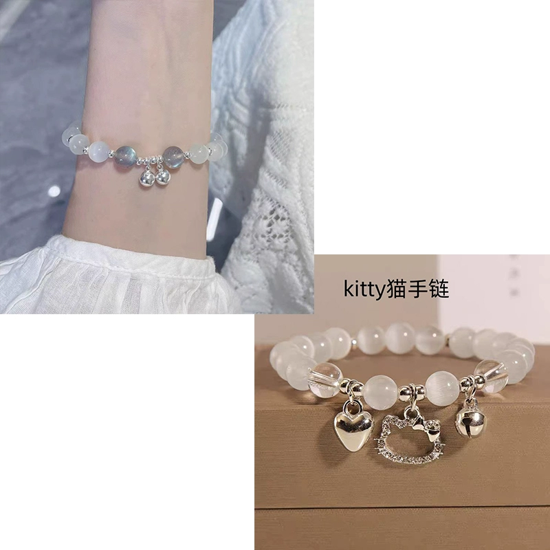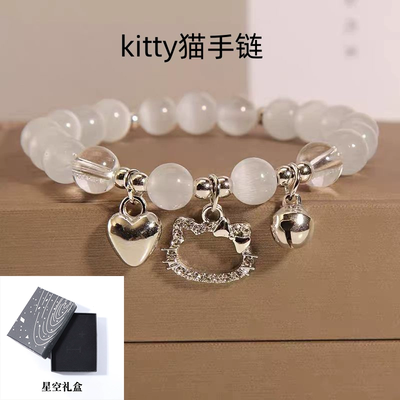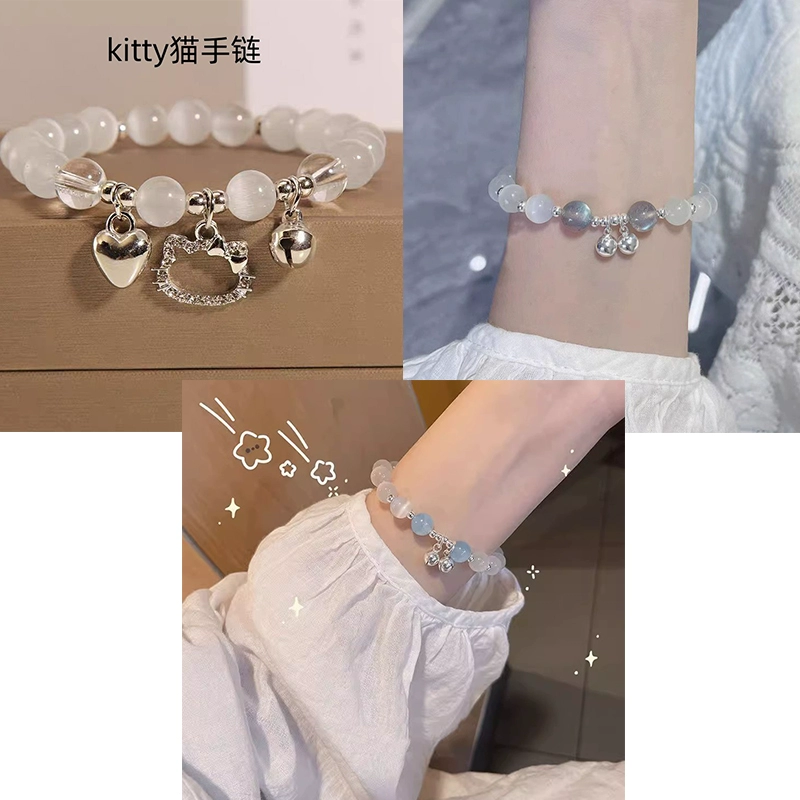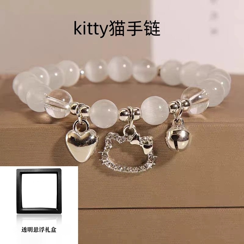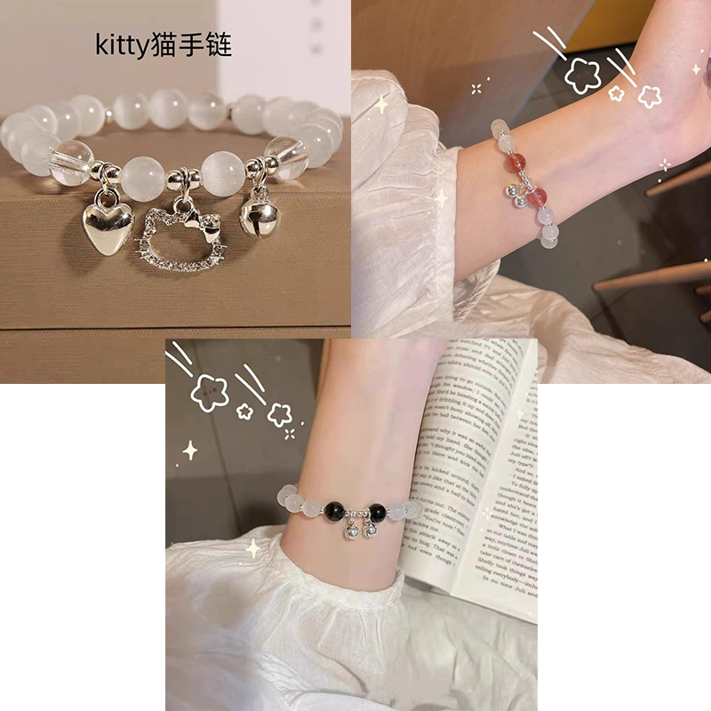 | nameOriginal | Little Red Book's same kt cat lucky cat love bell bracelet play bracelet KT cat's eye stone beaded girlfriend jewelry |
