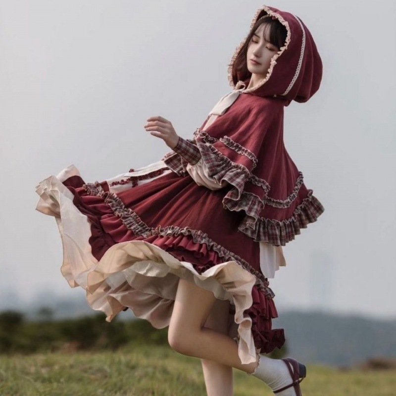 Little Red Riding Hood full set Lolita autumn and winter spring and summer Lolita cloak Lolita dress suit op with delivery